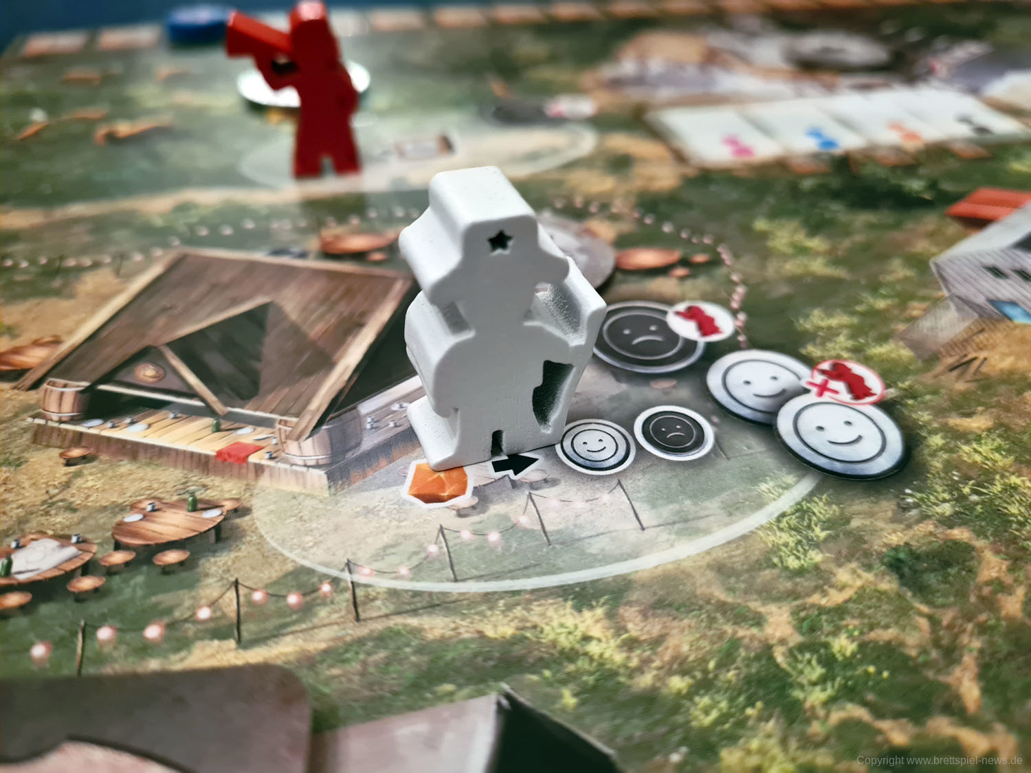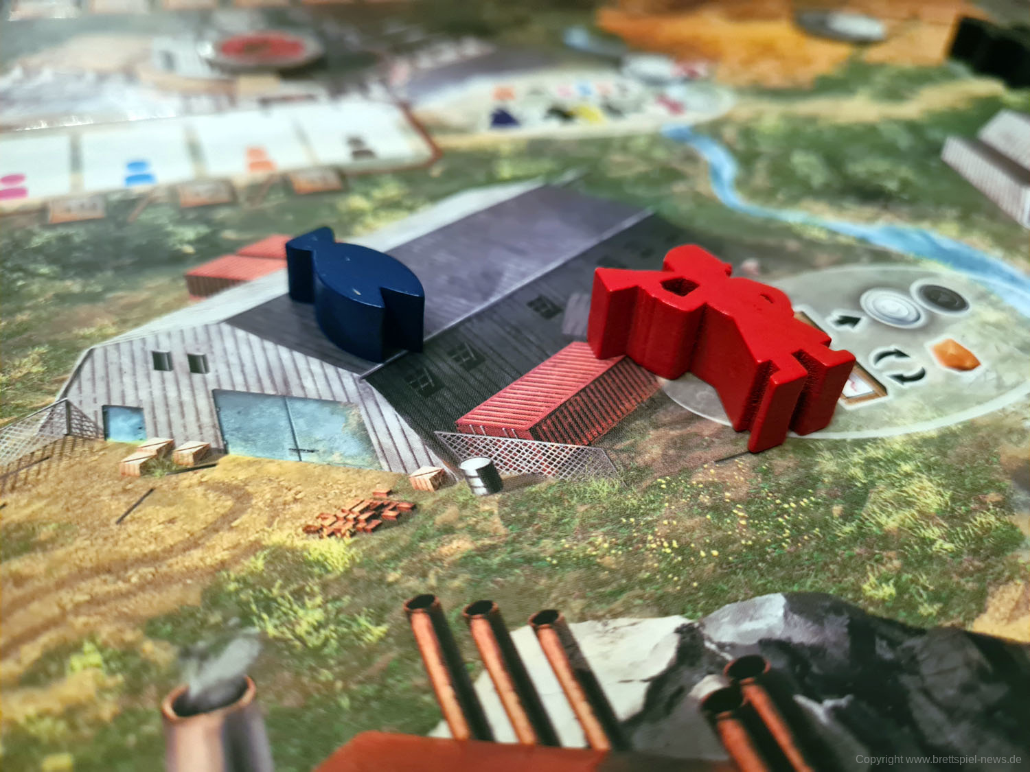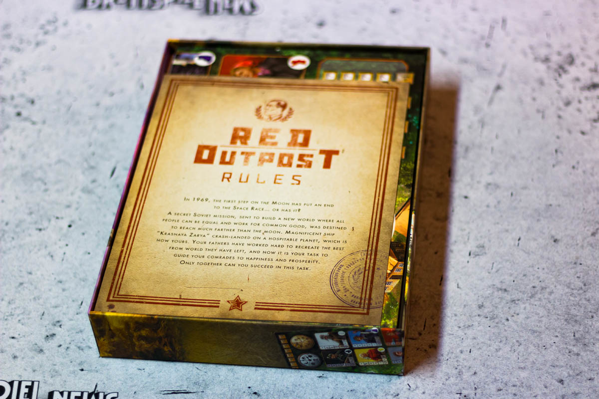 Das Thema Weltraum wirkt bei RED OUTPOST letztlich aufgesetzt. Ich habe neue Mitspieler nach einer Partie gefragt, was denn das Thema des Spiels sei. Niemand erwähnte daraufhin die Weltraum-Thematik. Ich vermute, dass man diese als Aufhänger ausgewählt hat, weil die Angst bestand, dass das Spiel ohne sie nicht ansprechend genug für potentielle Spieler sein könnte. Wer sich also auf eine tolle Weltraumatmosphäre freut, wird hier definitiv enttäuscht. Die Idee von der sowjetischen Siedlung wird dagegen sehr gut umgesetzt.