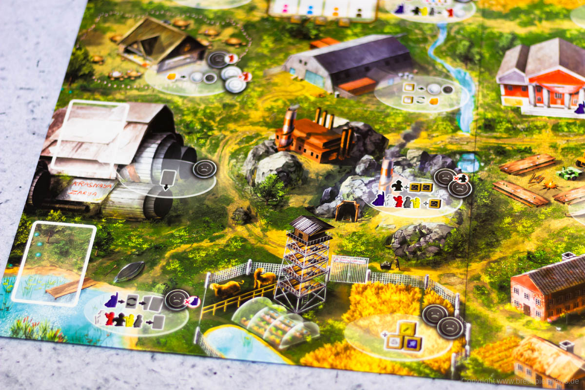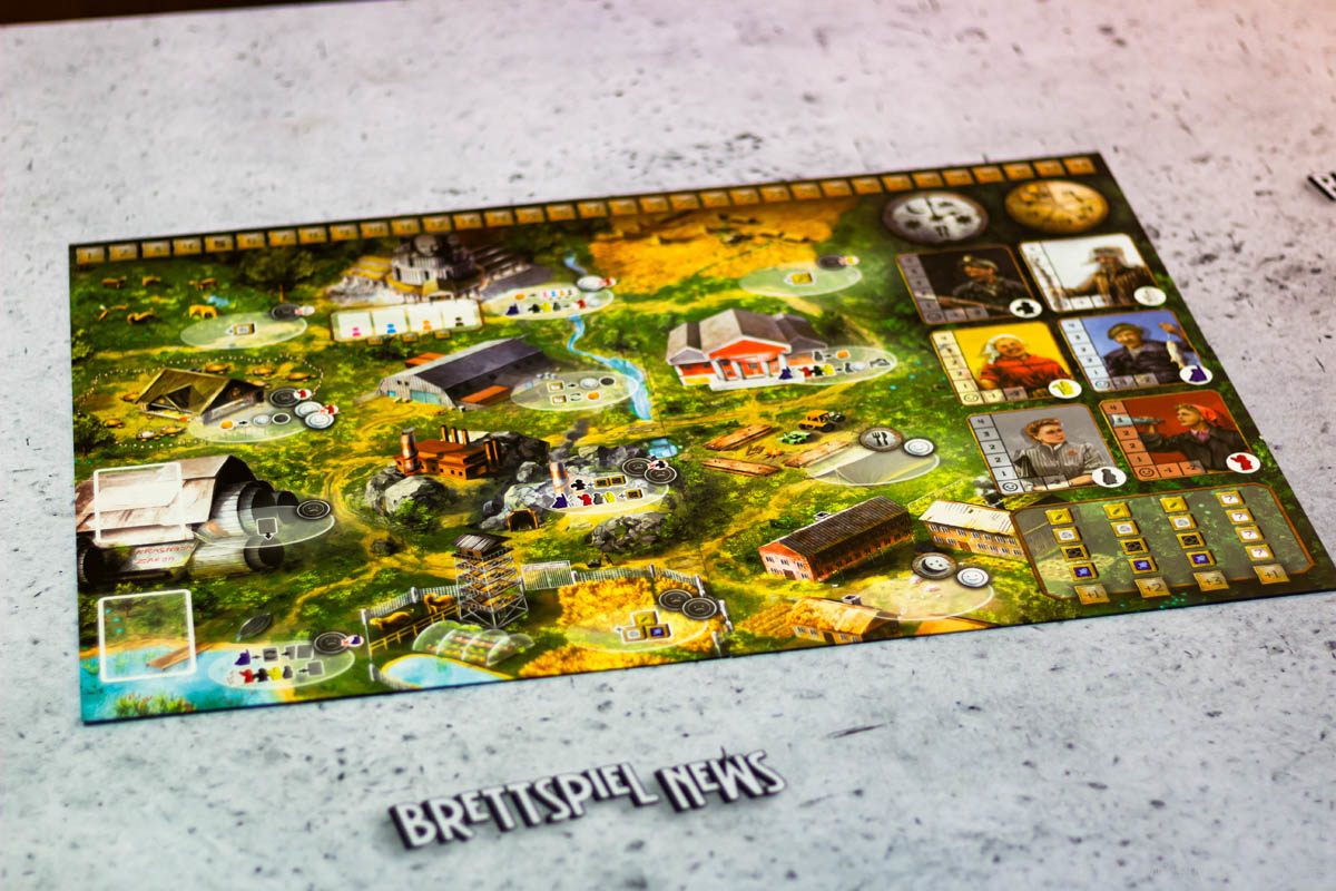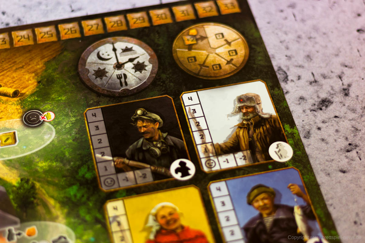 RED OUTPOST bietet einige sehr durchdachte Spielmechaniken, die uns an das Spielgefühl verschiedener Brettspielklassiker erinnert haben. Die Effekte der Aktionsfelder fühlen sich richtig umgesetzt an und zeigen ein schön thematisches Bild der Spielwelt. Natürlich steigt die Stimmung von Arbeitern, die zum Bierhaus geschickt werden, während das andere unzufrieden macht, weil diese sich beispielsweise fragen, warum wieder Vladimir ausgewählt worden ist und nicht sie. Natürlich findet der Farmer es weniger schön, in der Mine arbeiten zu müssen, während der Bürokrat sich freut, dass andere seine Arbeit für ihn erledigen müssen.