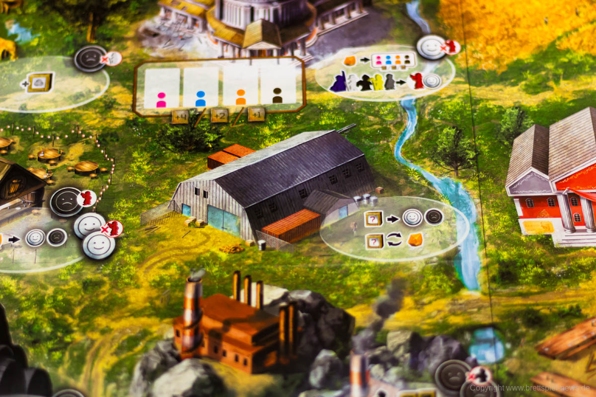 Auch der 3- und 4-Spieler-Modus ist ein wenig „unfair“, was der Aktivierung der Arbeiter geschuldet ist. In jeder Phase (Morgen-, Mittag-, Abendstunden) wird der Startspieler-Marker reihum weitergegeben, sodass der Startspieler jeweils wechselt. Während es bei 2 Spielern noch ausgeglichen ist, beginnt der erste Spieler in einer Partie mit 3 Spielern insgesamt 3 Phasen, die anderen jeweils nur 2 und in einer Partie mit 4 Spielern aktivieren der erste und zweite Spieler in 3 Phasen einen Arbeiter zuerst. Unterm Strich sind dies nur kleinere strategische Vorteile, jedoch muss dies jedem bewusst sein.