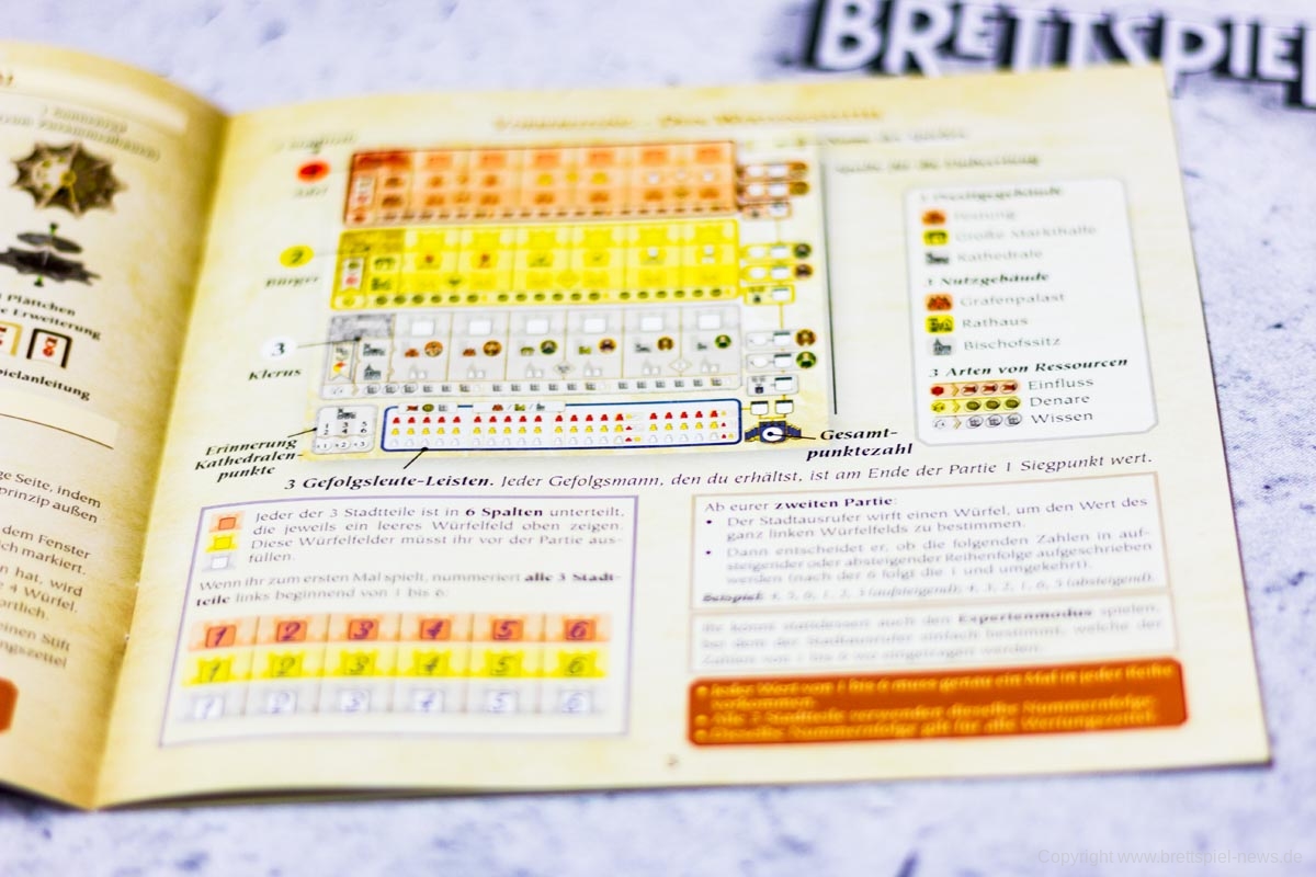Die Spielregeln sind gut verständlich und die Beispiele tragen zu diesem Verständnis bei. Durch die Verzahnung der Felder und die Manipulation der Würfel durch die Ressourcen, werden die Möglichkeiten erst im Laufe der ersten Partie deutlich. Dieses sorgt dafür, dass im ersten Spiel vielleicht einige schlechtere Entscheidungen getroffen werden, welches dem Spielspaß aber nicht schadet. Das Spiel ist dabei schön kurzweilig, sodass direkt eine zweite Runde gespielt werden kann. Das Material hat eine gute Haptik, wobei der Wertungsblock nur einseitig bedruckt worden ist. 100 Blatt mögen einem zunächst viel vorkommen, gerade bei größerer Spieleranzahl kann sich dieser jedoch schnell aufbrauchen. Die Spieleranzahl muss theoretisch nicht auf 10 Personen begrenzt werden, denn alle Spieler entscheiden simultan und diese Entscheidung hat keinen Einfluss auf die Mitspieler. Damit entsteht nur Wartezeit, wenn andere Spieler länger überlegen.