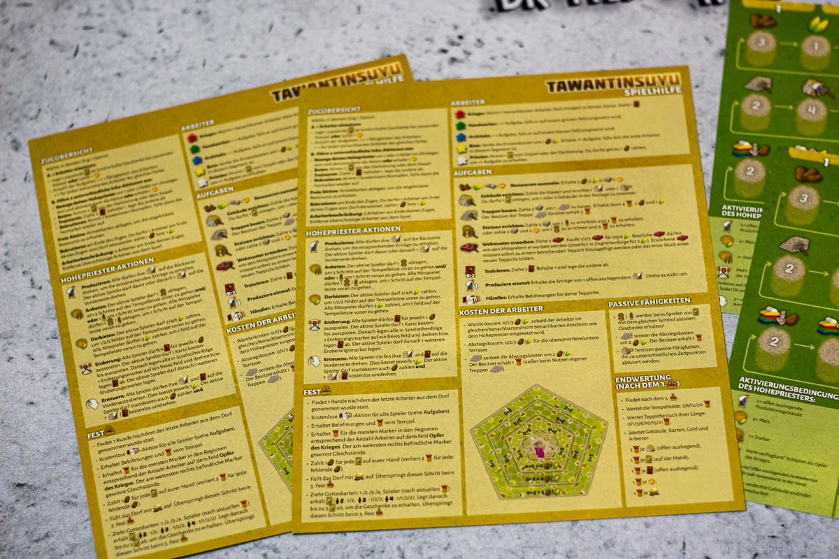 Der Solomodus ist ein nettes Gimmick. Der Automa ist gut gemacht, erfordert aber etwas Einarbeitungszeit, um einen flüssigen Spielablauf zu bieten. Für reine Solospielende würde ich TAWANTINSUYU jedoch nicht empfehlen, da das Spiel sehr von der Interaktion lebt. Der virtuelle Gegner bietet da meiner Meinung nach zu wenig Langzeitspaß.