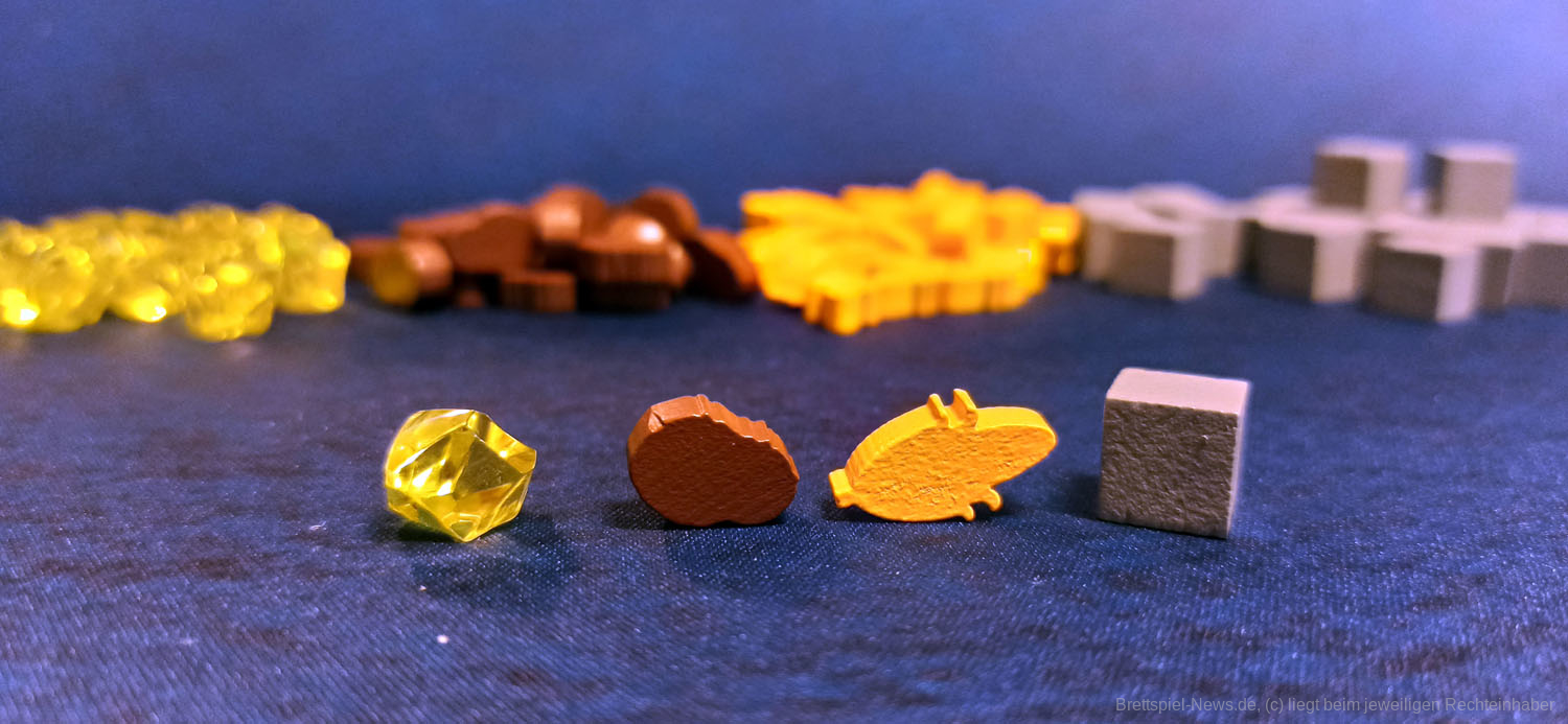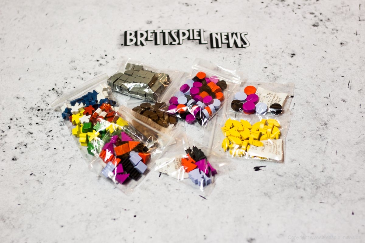 Das umfangreiche Spielmaterial aus Karton, Holz und Kunststoff ist schön anzusehen und von guter Qualität, ohne aber besonders aufzufallen. Das Spielbrett ist dreifach gefaltet und ausgebreitet entsprechend imposant.