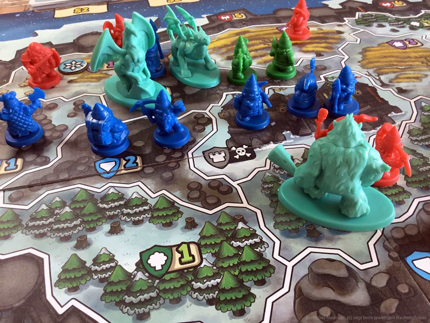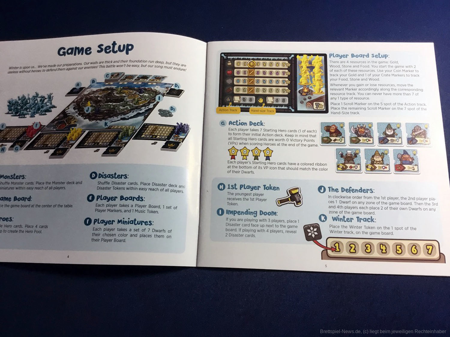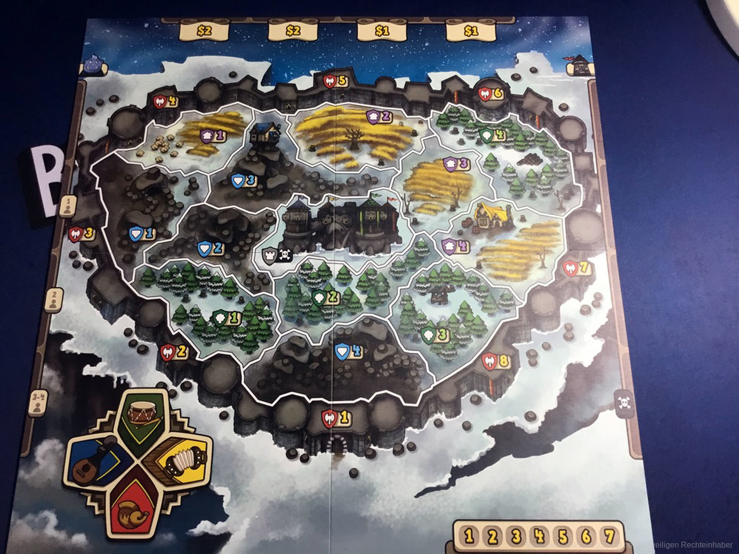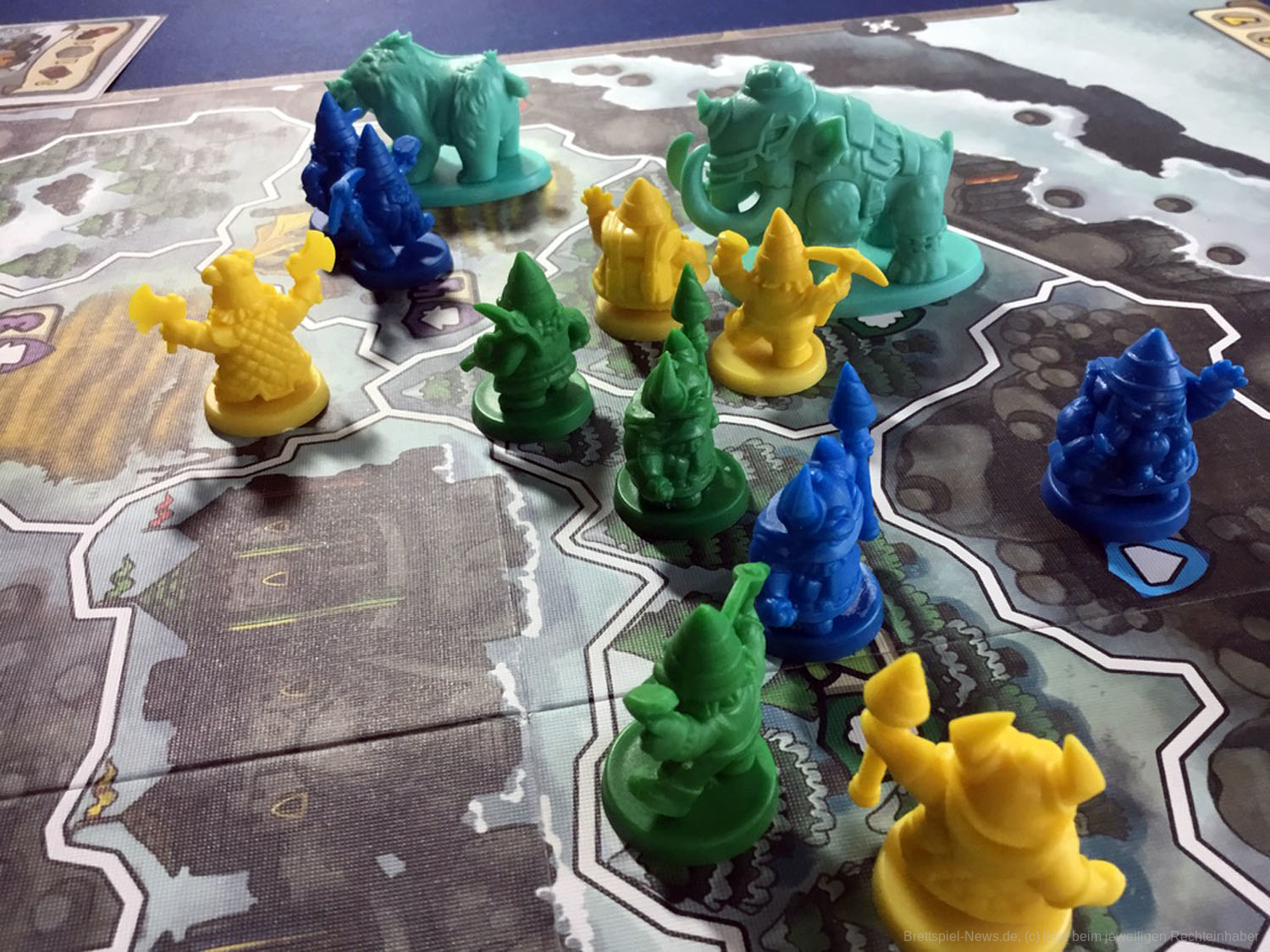 DWAR7S WINTER ist ein funktionierendes semikooperatives Spiel und das ist für sich genommen schon ein großes Lob. Kaum ein anderes Genre kennt so viele gescheiterte Vertreter wie dieses. Die vielen heraufziehenden Bedrohungen erfordern gute Absprachen unter den Spielern und eine clevere Positionierung auf dem Brett. Da Zwerge nach erfolgreichem Kampf gegen Monster und Katastrophen abgeräumt werden, erhält jeder Spieler früher oder später die Möglichkeit, auf diese Art Punkte zu machen. Vorausschauende Planung ist dazu unerlässlich.