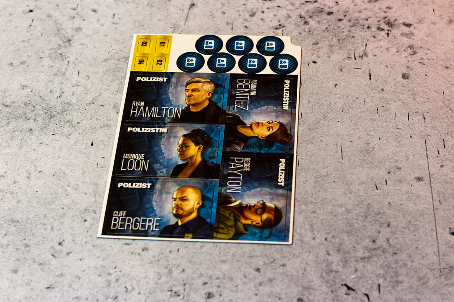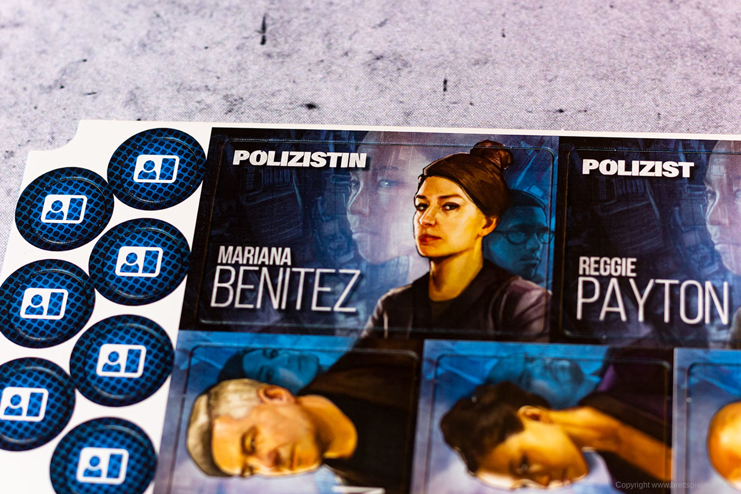 Darüber hinaus enthält DETECTIVE – ERSTE FÄLLE einige Tokens, ein Auto sowie eine Uhr aus Holz und fünf verschiedene Ermittlerplättchen. Diese sind zwar deutlich dicker als der Rest des Spielmaterials, haben aber abseits des Flavour-Textes keinerlei Funktion im Spiel.