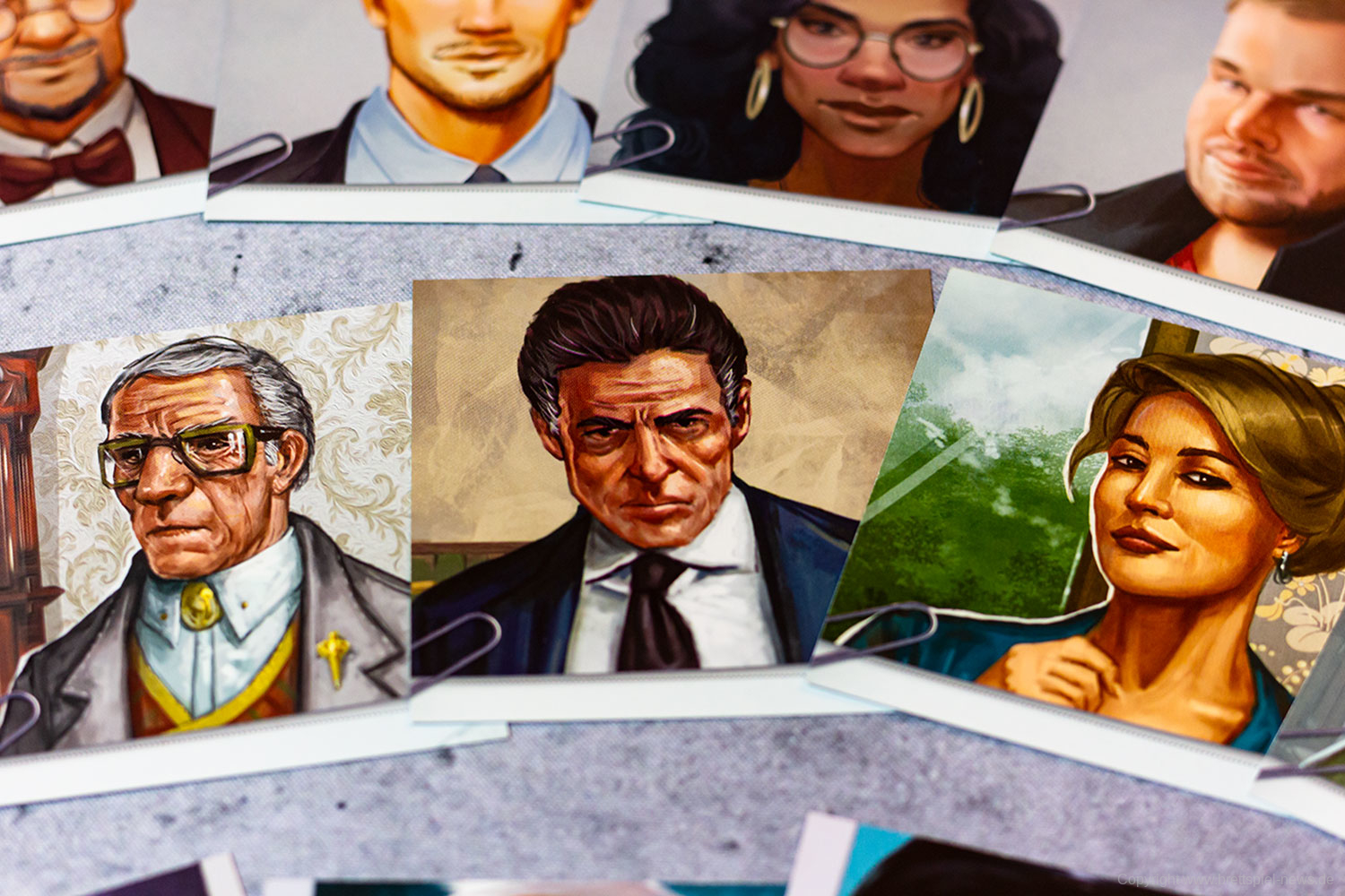 Hat man erst einmal wieder Ordnung geschaffen, entpuppt sich DETECTIVE – ERSTE FÄLLE als ein mäßig bestücktes Krimi-Brettspiel. Zwar enthält das Spiel Figurenportraits, welche beim Erstellen von Mindmaps sehr hilfreich sein können, geizt dafür aber bei der Materialstärke der Karten und des Spielfelds.