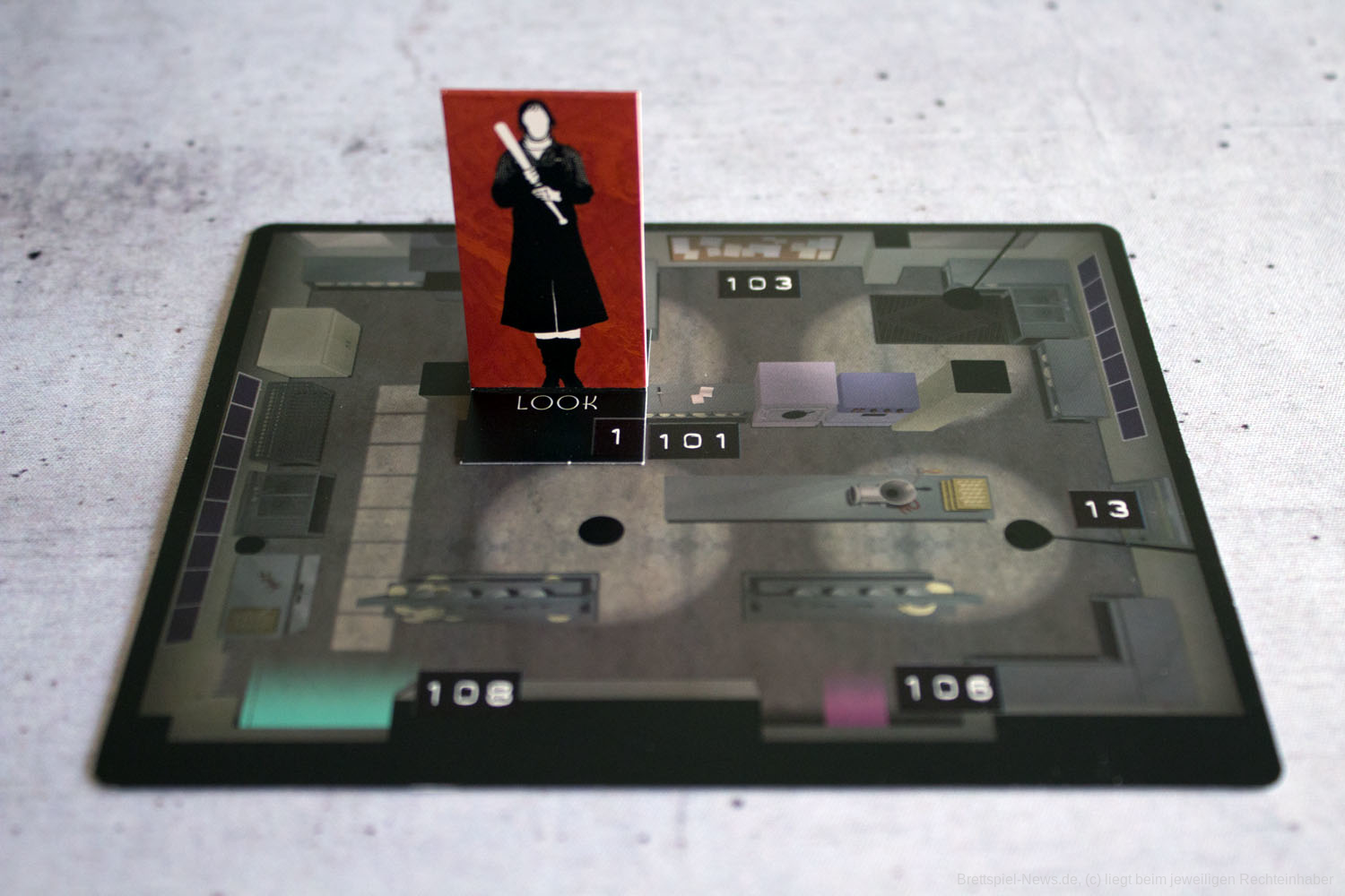 Das Material besteht aus einem Satz mit 44 Karten, 11 verschlossenen Umschlägen mit zusätzlichem Material, 4 Journalen mit den Texten zum Spiel, 2 Standees und 4 Raumkarten. Dazu kommt noch die Anleitung zum Spiel.
