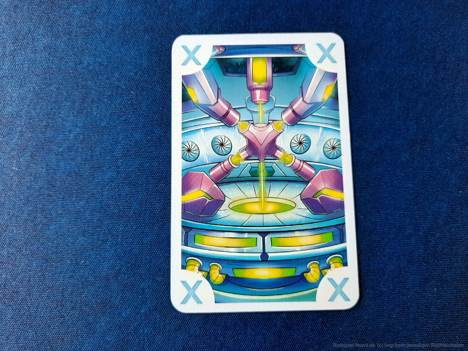 Es gibt Karten mit den Nummern 1 bis 5 und die Translationsfusionatoren, welche ein X zeigen und als Joker dienen. Jeder/jede Spieler_In bekommt zu Beginn neun Karten ausgeteilt und legt diese verdeckt in einer Reihe vor sich aus. Danach können beliebig viele dieser Karten aufgedeckt werden, um den anderen die Logik in der eigenen Reihe anzudeuten. Aufgedeckte Karten können von den anderen Spieler_Innen nicht ausgewählt werden und es sollten auch nicht zu viele sein, denn es geht darum, so viele Alienteams wie Spieler_Innen teilnehmen, aus den Kartenauslagen zu bilden.