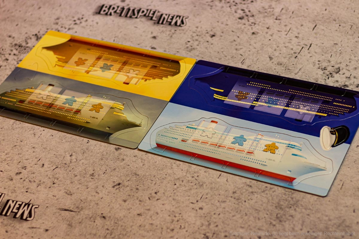 Doch, bevor es richtig losgeht, müssen in Phase 3 erst einmal Vorbereitungen getroffen werden. Das bedeutet, dass die Spieler:innen nacheinander ein Schiffskartenpaar auswählen, welches das Unterhaltungsprogramm für diese Etappe festlegt.
