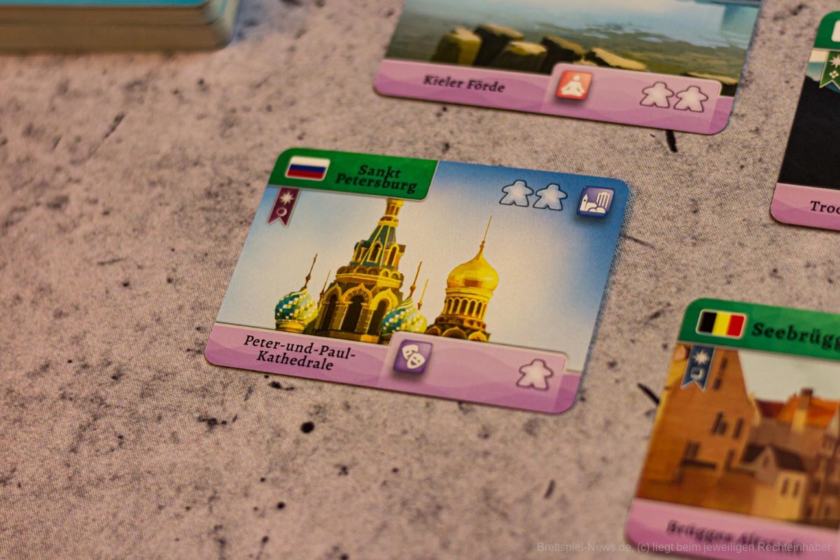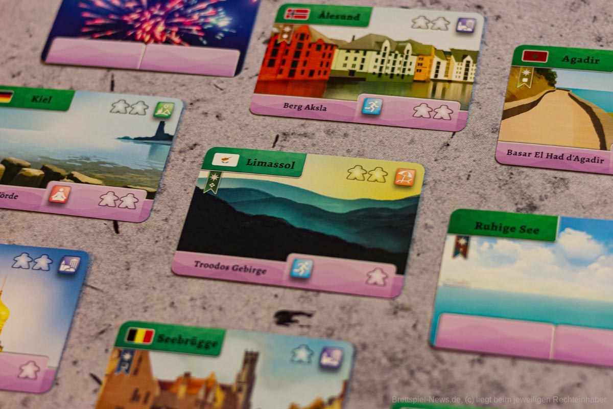 Andererseits gehört jedes Reiseziel zu einer von sechs Regionen. Je mehr Karten einer Region die Spieler:innen am Spielende haben, desto mehr Siegpunkte erhalten sie dafür.