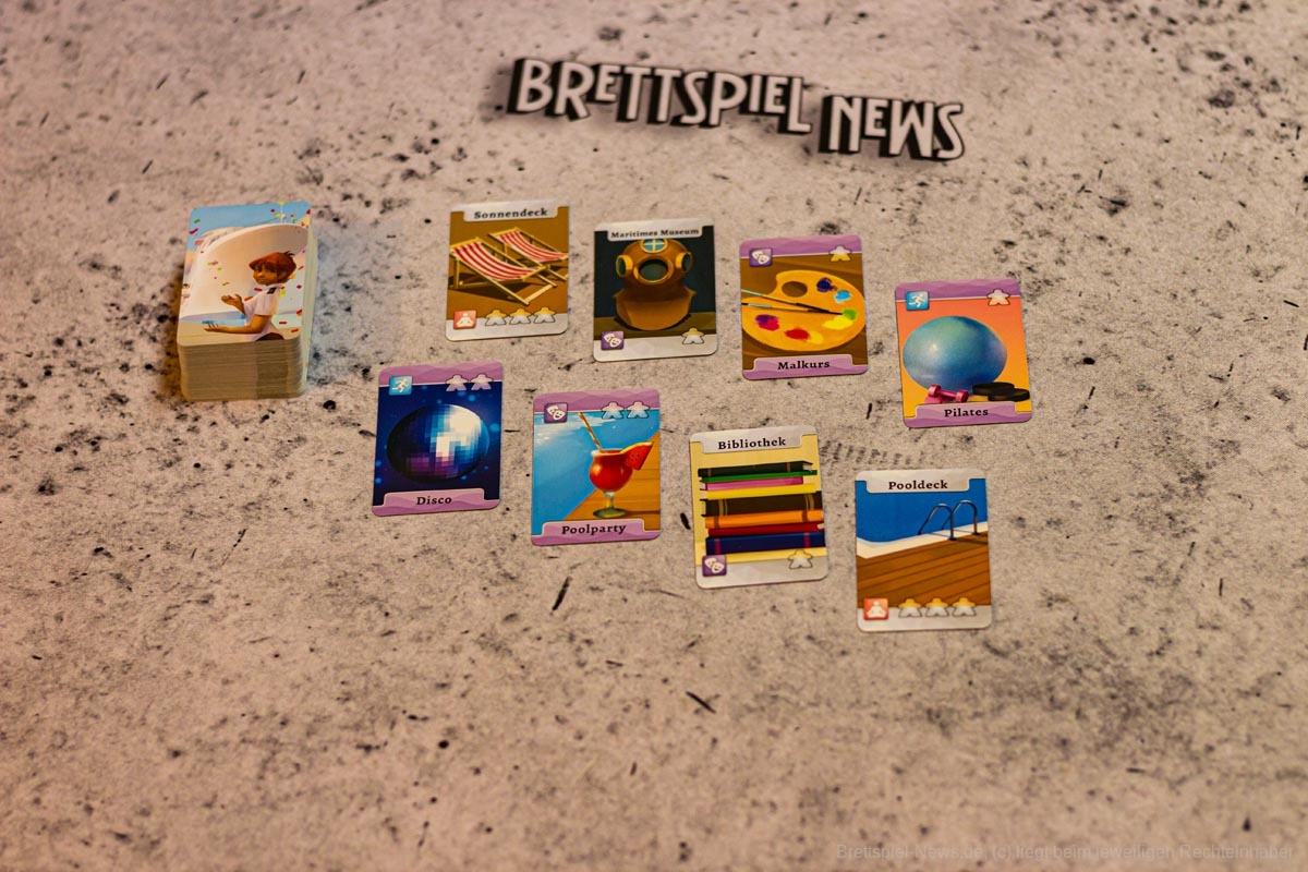 Dafür funktioniert DREAM CRUISE mit jeder Spieleranzahl sehr gut. Am empfehlenswertesten sind Partien mit drei Spieler:innen. Hier ist die indirekte Interaktion durch das Wegschnappen von Karten noch ein bisschen größer als in anderen Konstellationen. Grundsätzlich kommen sich die Kapitäne bei DREAM CRUISE aber selten in die Quere und jeder versucht, ungestört von den anderen das beste Unterhaltungsprogramm für seine Passagiere zu gestalten.
