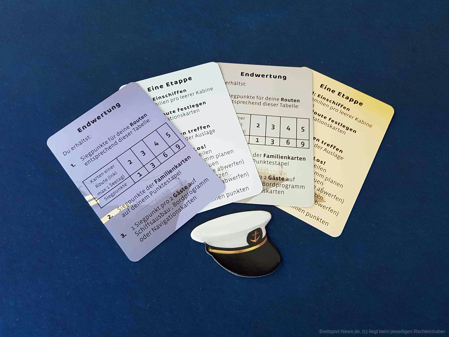Sollte jedoch der Familienstapel während der letzten Etappen leer geworden sein, folgt nun die Endwertung. In dieser werden die Punkte der erledigten Familienkarten zusammengezählt und dazu noch die Bonuspunkte durch das Bereisen gleicher Regionen addiert. Auch je zwei Gäste im Schiff bringen noch einmal einen weiteren Siegpunkt. Wer nun die meisten Siegpunkte hat, wird zum Gewinner gekürt.
