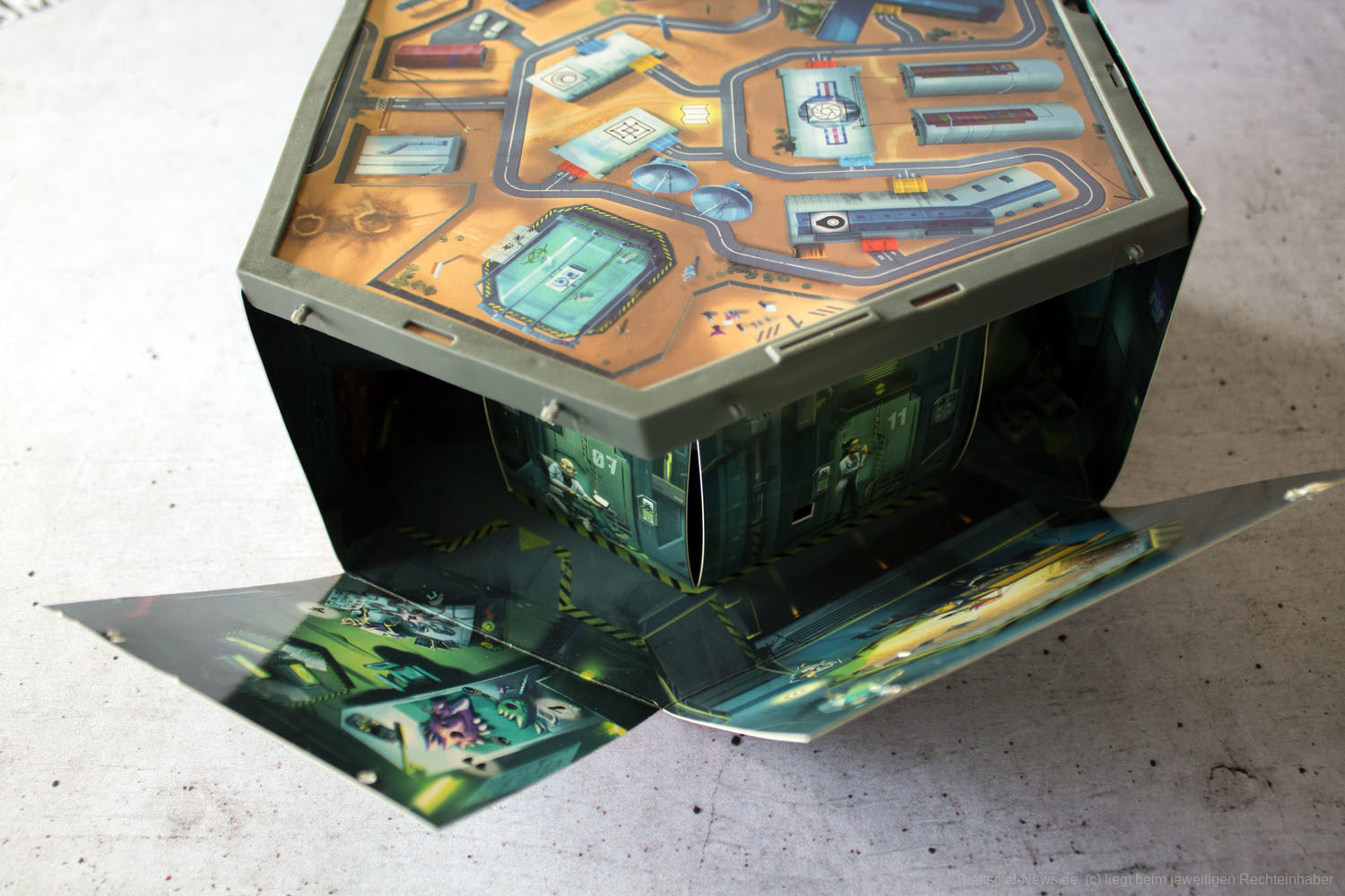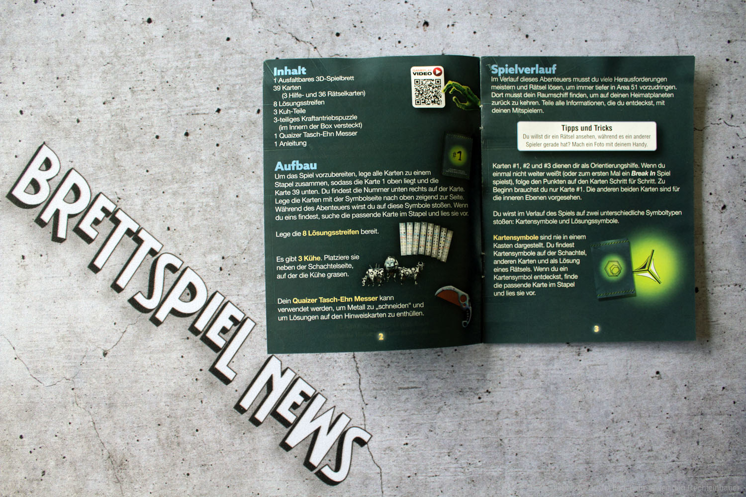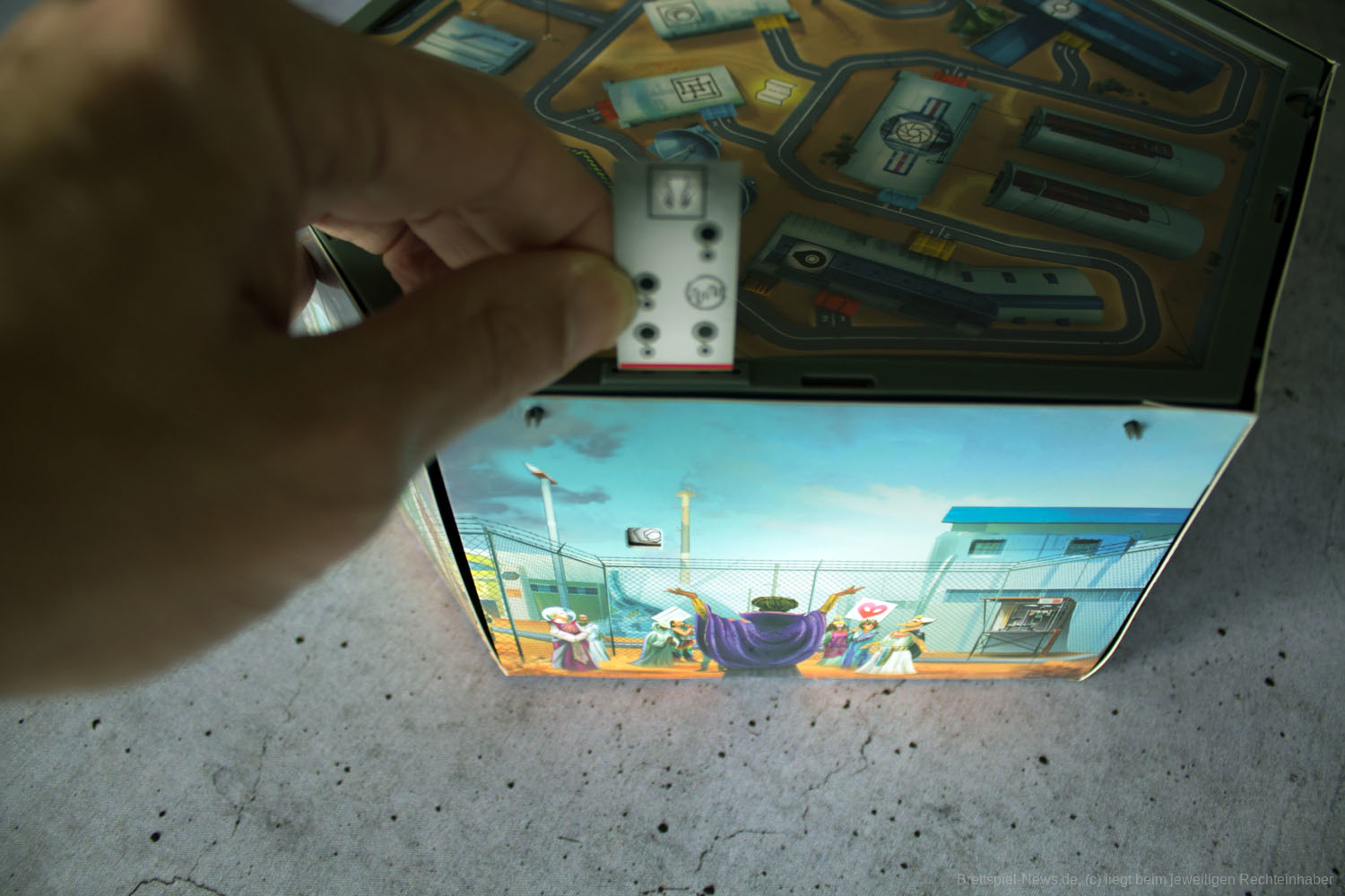 Die 3D-Box wirkt, wie schon die ALCATRAZ-Box, ein bisschen klapprig. Beim Spielen ist dies nur bedingt von Bedeutung, da die Funktionalität dadurch nicht gemindert wird und die Box ohnehin mit der Zeit immer weiter auseinandergeklappt wird. Die Streifen zum Testen der Lösung sind recht dünn und die Symbole darauf relativ klein. Durch den beidseitigen Druck muss immer wieder nach dem passenden Streifen gesucht werden. Die Rätsel- und Hinweiskarten sind stabil.