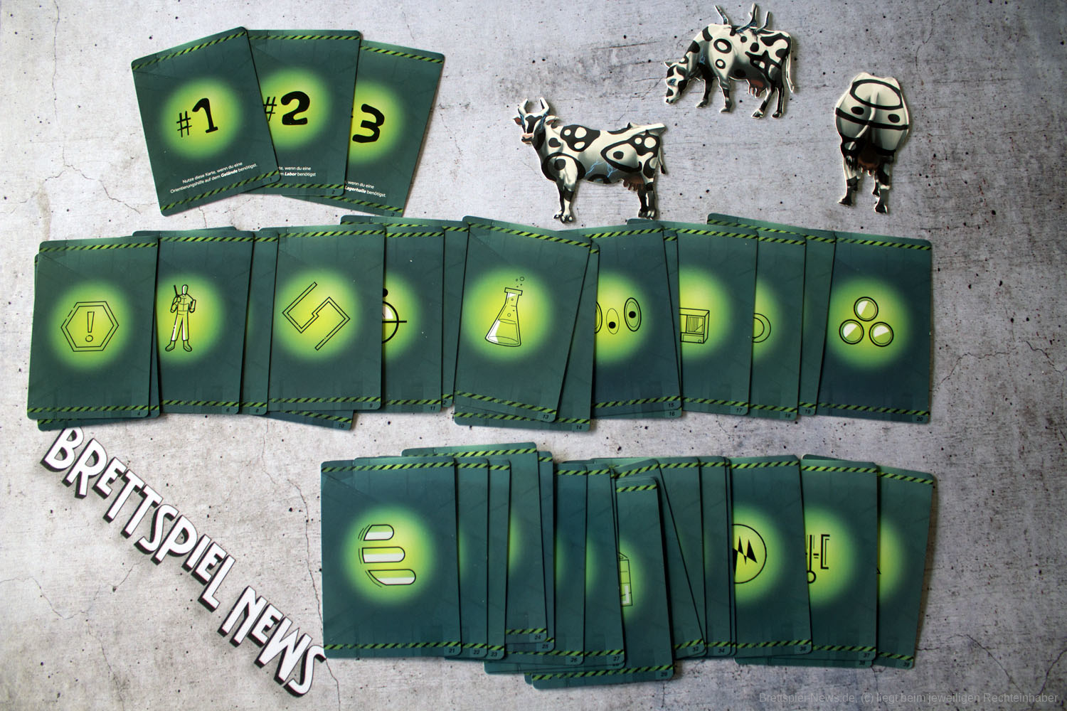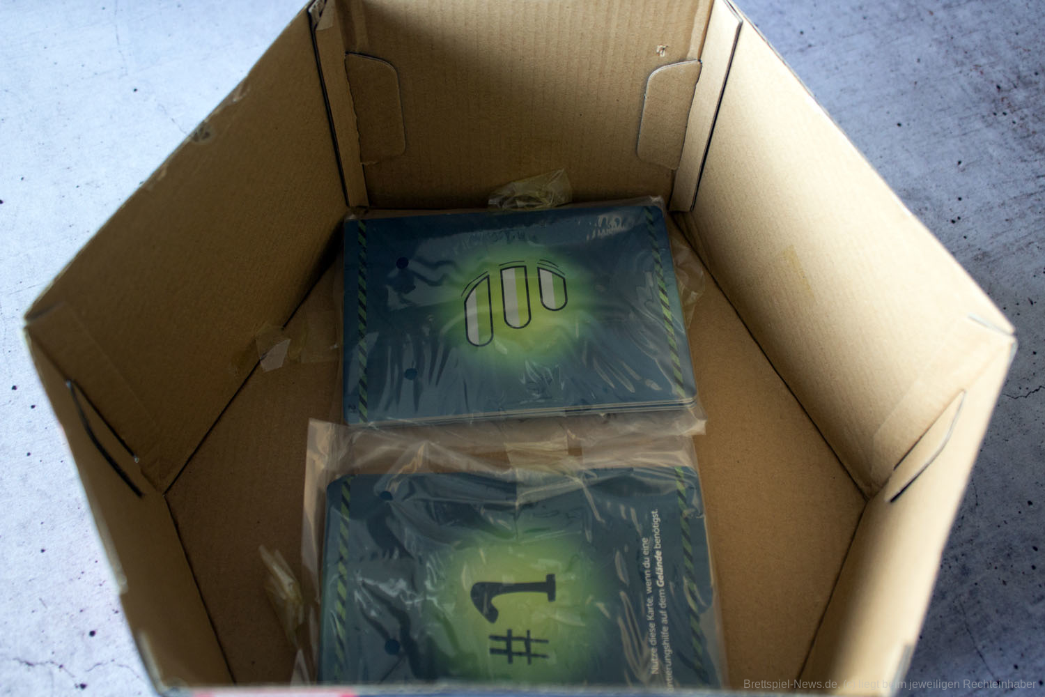 Bei der Verpackung hat sich zunächst nichts verändert. Die Karten kleben weiterhin im Deckel der Schachtel und der gesamte Aufbau mit den angeklickten Wänden wirkte ebenso instabil wie es bei dem vorhergehenden Spiel der Reihe der Fall war. Die Anleitung wurde, zumindest nicht erkennbar, überarbeitet, weswegen alle, die das erste BREAK IN noch nicht gespielt haben, ihre Probleme haben dürften, sich zu Beginn zurechtzufinden. Wir haben uns trotz Vorkenntnissen etwas schwergetan, uns in das Spiel einzufinden. Dies lag aber eher an den Rätseln, die uns kaum Anhaltspunkte dafür gaben, was nun eigentlich von uns erwartet wurde. Es hat ein bisschen gedauert, bis wir die Rätsel verstanden haben, und ohne die Hilfe der Richtungskarte „1“ wären wir wohl an dieser Stelle auch nicht so schnell weitergekommen. Erst nach dem Öffnen der Basis begann sich ein Spielfluss zu entwickeln.