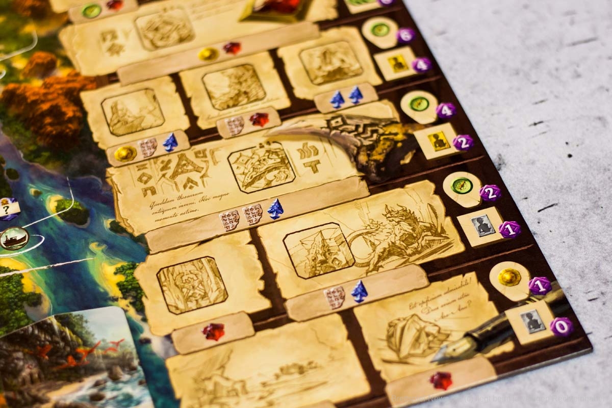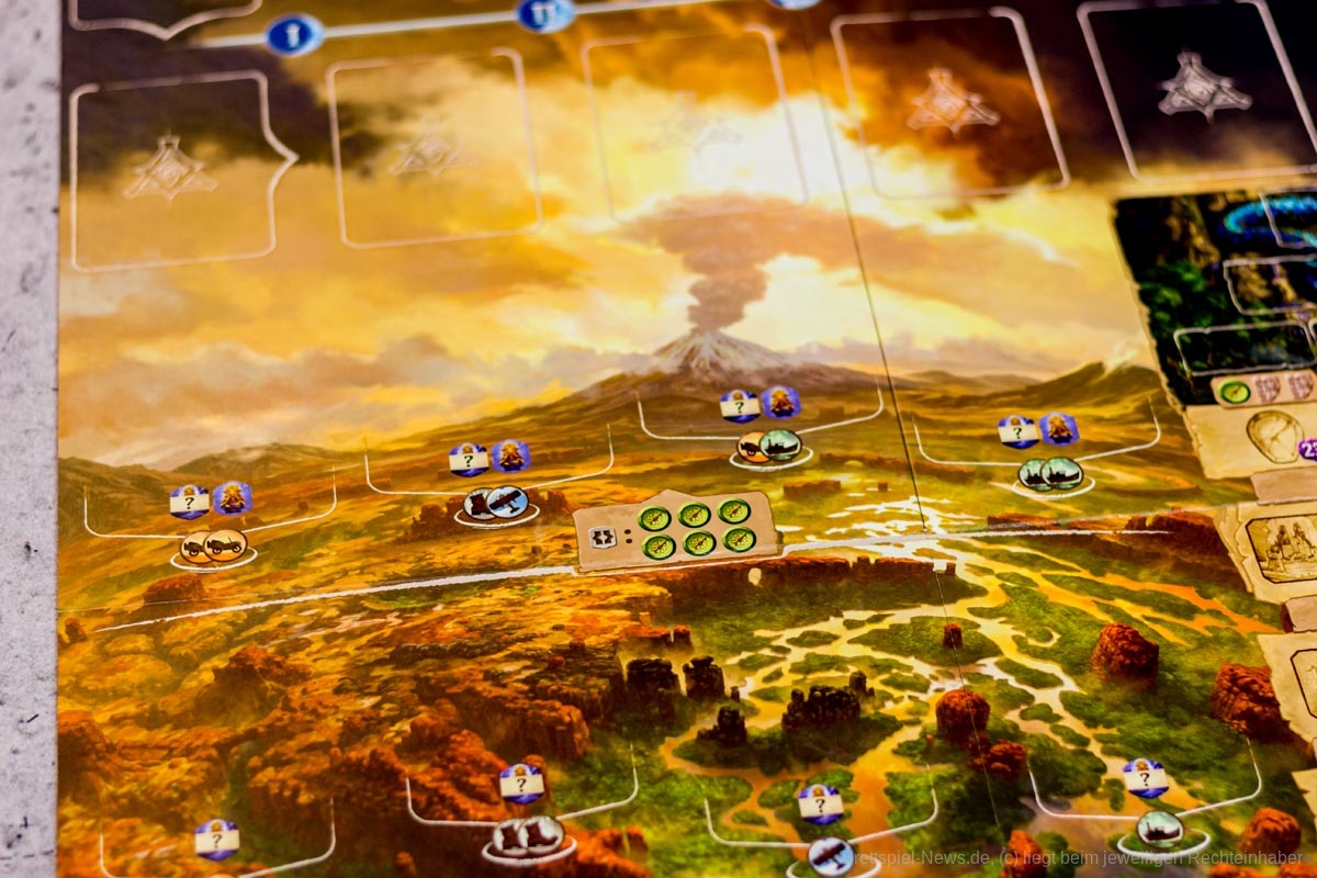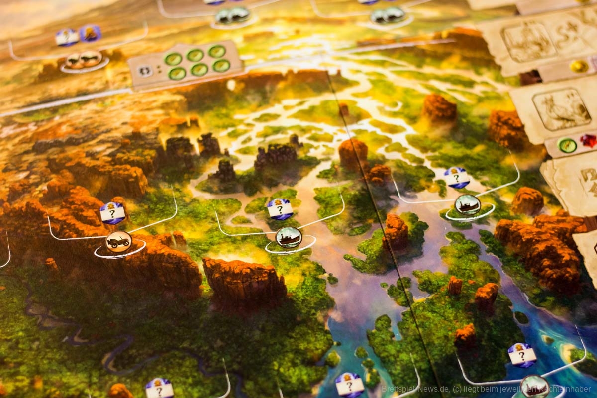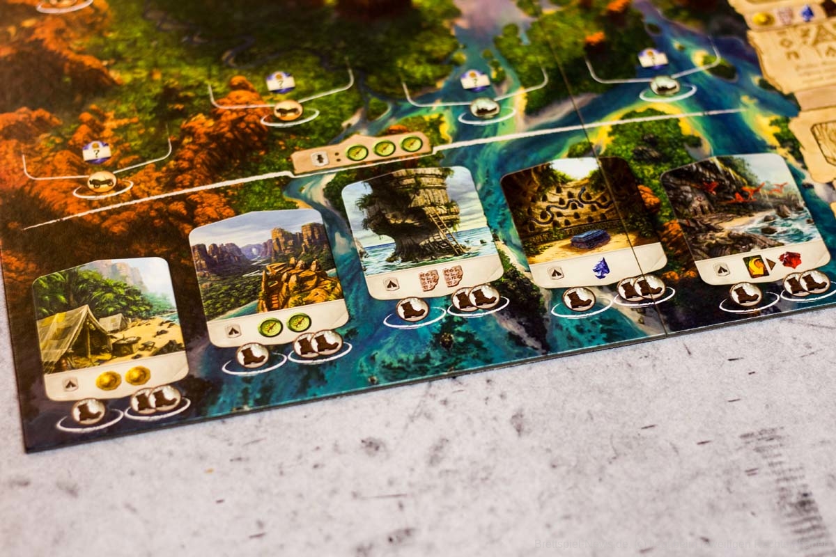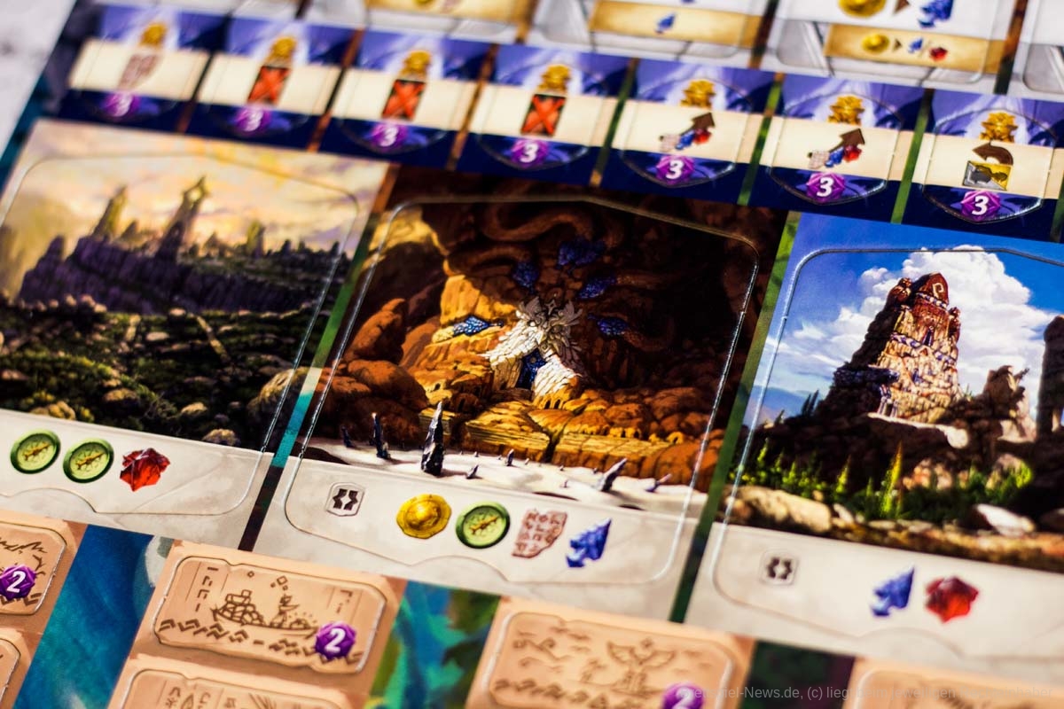 Im Kern ist das Spiel ein typisches Eurogame. Es werden Arbeiter eingesetzt, Ressourcen müssen gesammelt und Kosten bezahlt werden. Die Orte können immer nur von einem Spieler aufgesucht werden und so erstreckt sich die gesamte Interaktion mit anderen Spielern auf das Wegschnappen von Orten, Karten oder Plättchen. Das ist nicht schlimm, fühlt sich manchmal aber etwas einsam an. Ein echtes Abenteuer braucht eigentlich auch einen Gegenspieler und unerwartete Wendungen.