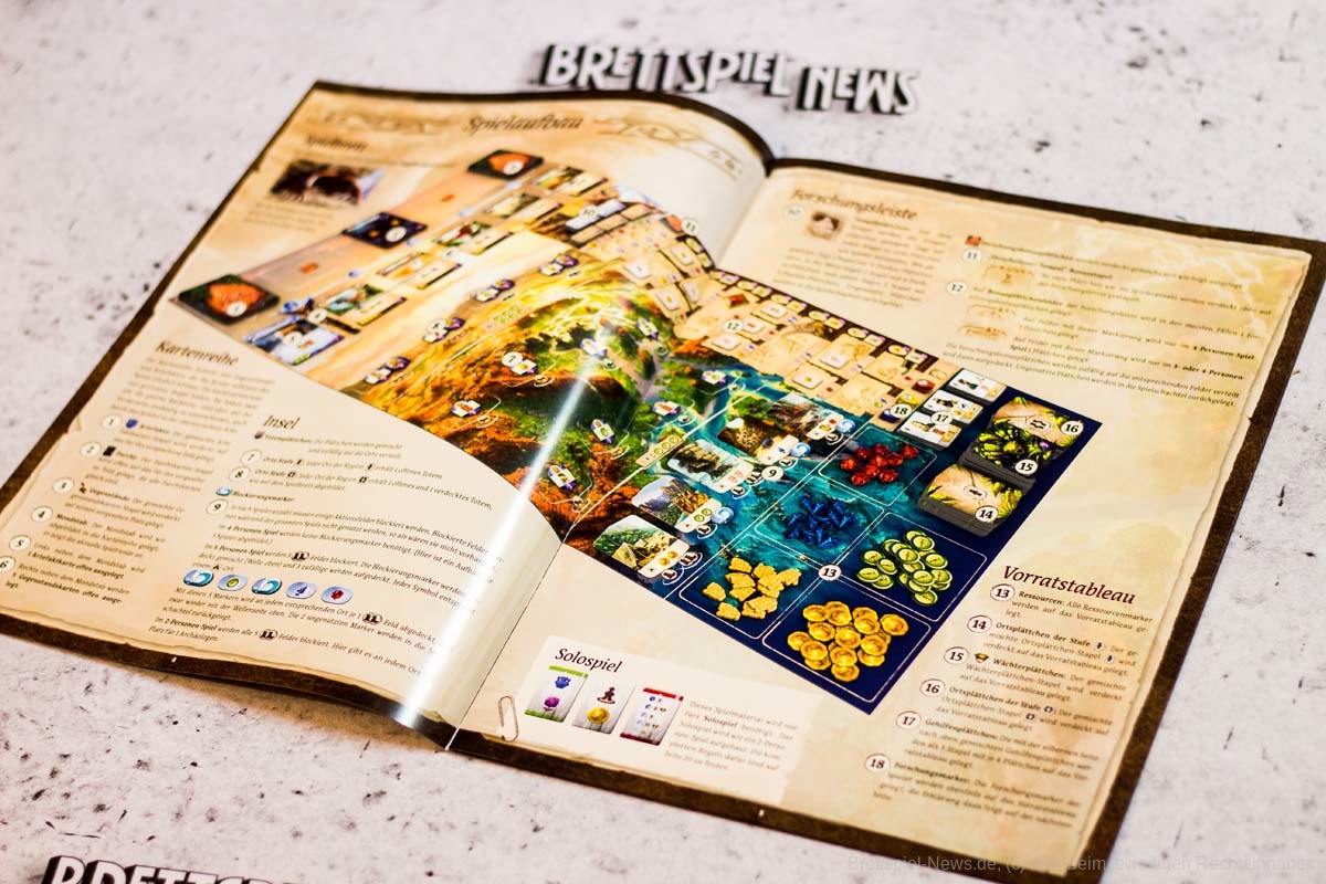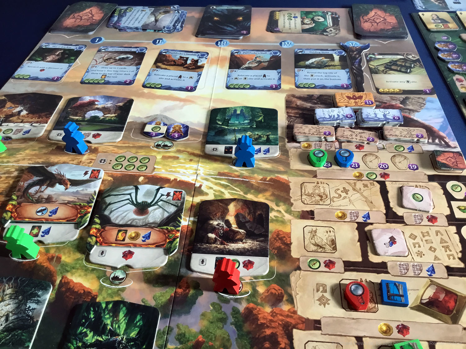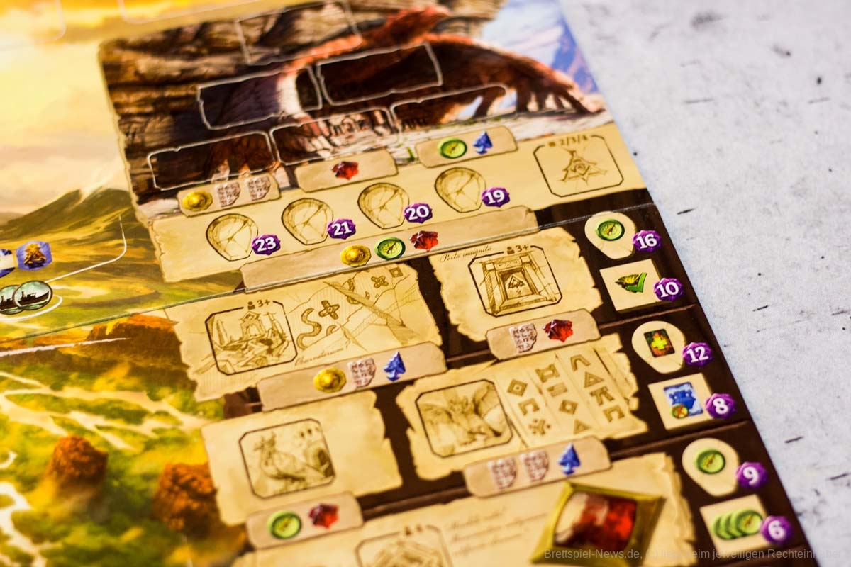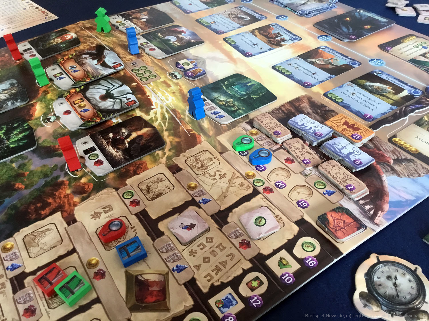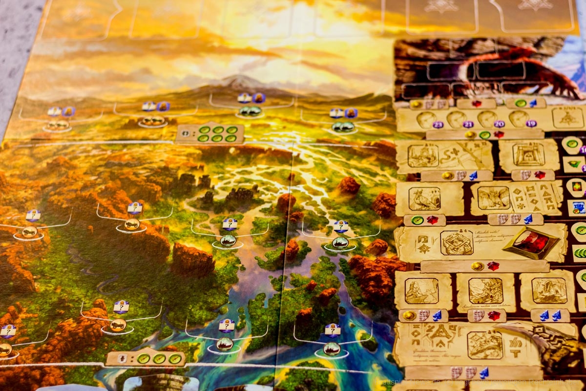 Im Kern ist das Spiel ein typisches Eurogame. Es werden Arbeiter eingesetzt, Ressourcen müssen gesammelt und Kosten bezahlt werden. Die Orte können immer nur von einem Spieler aufgesucht werden und so erstreckt sich die gesamte Interaktion mit anderen Spielern auf das Wegschnappen von Orten, Karten oder Plättchen. Das ist nicht schlimm, fühlt sich manchmal aber etwas einsam an. Ein echtes Abenteuer braucht eigentlich auch einen Gegenspieler und unerwartete Wendungen.