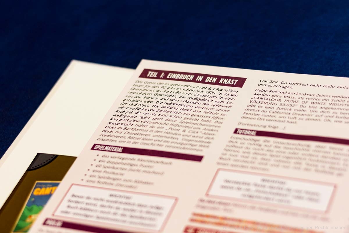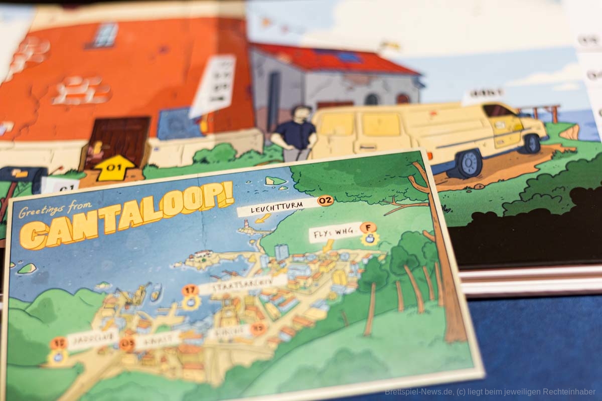 Uff, das war ein langer Weg, bis es „Cantaloop“ endlich zu mir auf den Tisch geschafft hat. Obwohl es gerade als Solospiel oft und gerne empfohlen wird, stand es bei mir nicht ganz oben auf der Liste. Aber jetzt endlich hab ich mich daran gewagt und mich Hals über Kopf ins analoge Point & Klick-Abenteuer gestürzt.