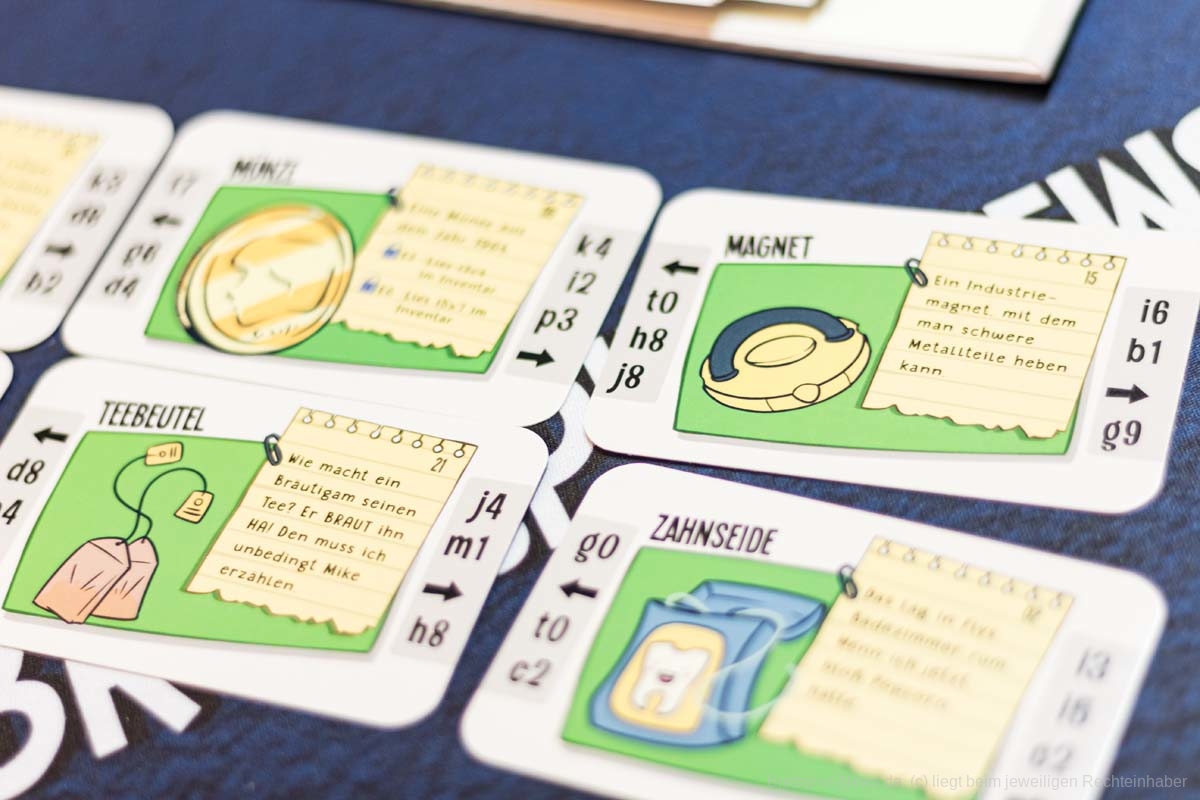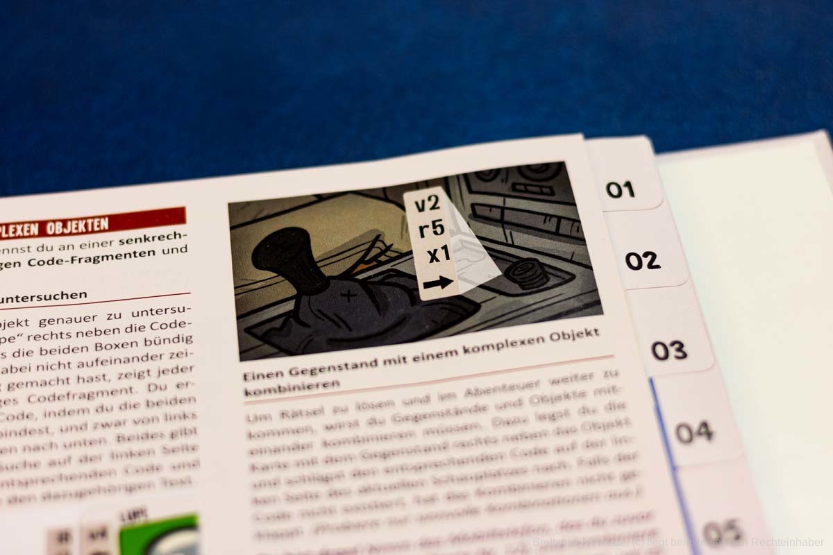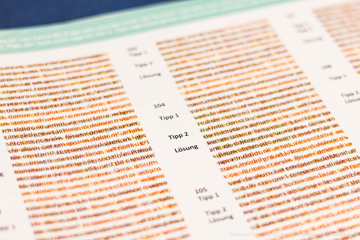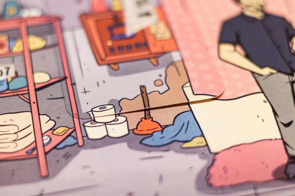 An solchen Stellen kann es aber für manche vielleicht nervig werden, wenn die Karten, die an veränderten Orten liegen, dauernd im Buch herumfliegen oder man sie ein- und aussortieren muss, um gut blättern zu können. Ich empfand das nie als wirklich störend, aber etwas fummelig war es schon.