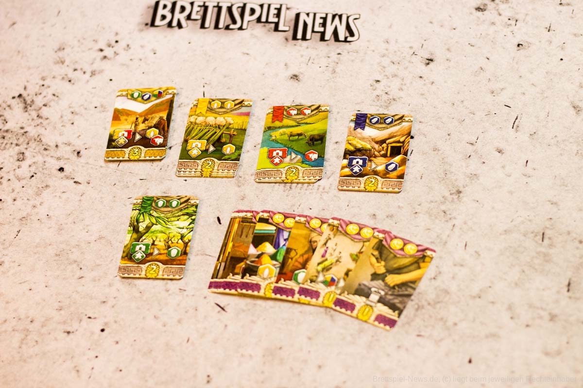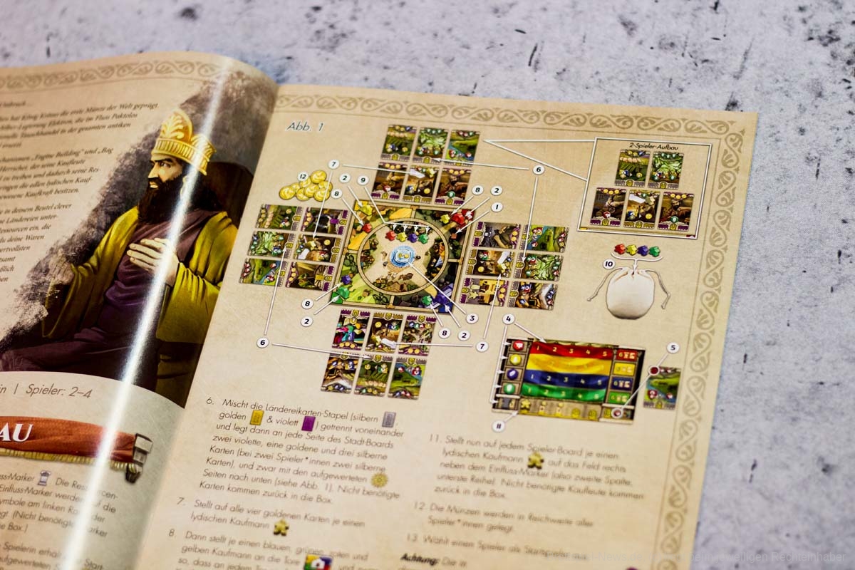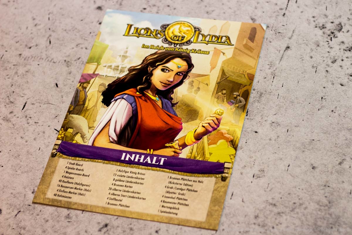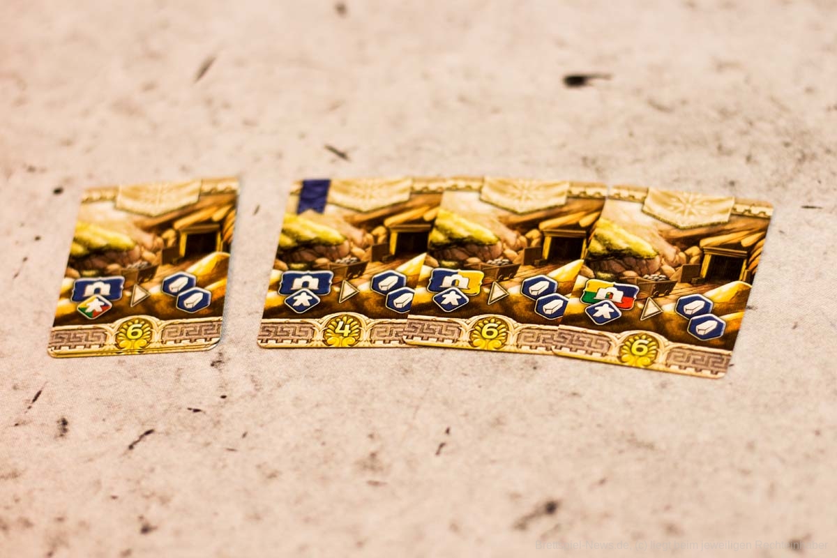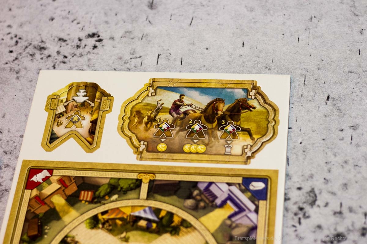 Die einzelnen Module bringen anschließend nicht nur willkommene Abwechslung ins Spiel, auch die Spieltiefe nimmt durch sie deutlich zu. Gerade wenn mehrere Module gleichzeitig in eine Partie integriert werden. Dann kann es auch für fortgeschrittene Spieler ein interessantes Spielerlebnis bieten. Die flexible Gestaltung der Partien ist ein absolut zu erwähnender Pluspunkt. Besonders gut haben uns die Module Wagenrennen, Landgüter und Innenhöfe gefallen. König Krösus und die Brunnenkarten würden wir in jede Partie als kleine Aufrüstung einbauen. Taktisch hat aber jede Erweiterung etwas Interessantes zu bieten und wertet das Grundspiel deutlich auf. So wird bei LYONS OF LYDIA verschiedenen Spielertypen etwas geboten. Insgesamt gibt sich das Spiel aber mit einem unteren Kennerniveau zufrieden.