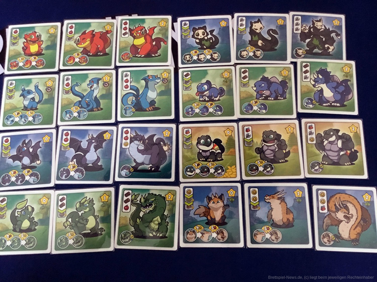 Ein besonderes Augenmerk gebührt den niedlichen Drachenbabys. Von jedem sind zwei im Stapel enthalten und alle unterscheiden sich neben ihren Boni natürlich im Aussehen deutlich voneinander. Das Aufziehen der kleinen Dinger macht Spaß und kann die eigene Strategie maßgeblich beeinflussen. Wie bei allen Tieren, bleiben sie aber nicht klein und niedlich, sondern werden zusehends größer und...gut manche bleiben dabei vielleicht trotzdem niedlich. Besonders durch die sich verändernden Darstellungen ist das Aufziehen spannend und das Ziehen eines neuen Drachenbabys ist jedes Mal so aufregend wie das Fangen eines neuen Pokémons.