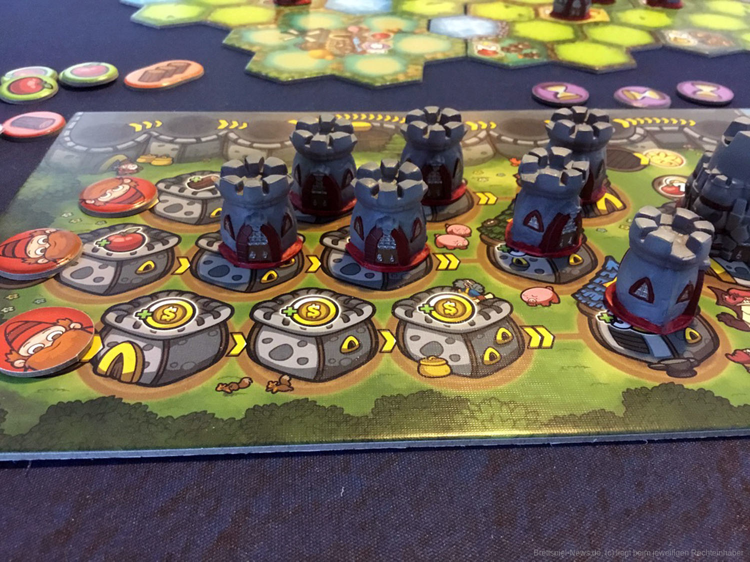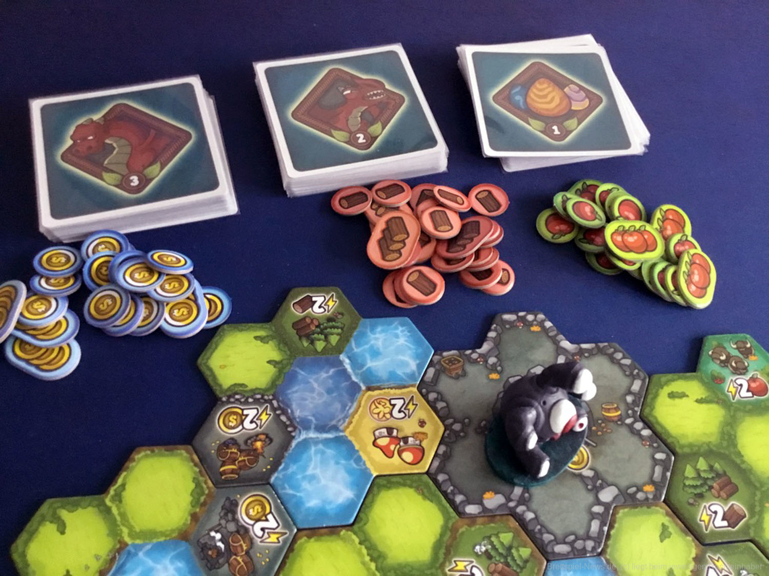 Die kluge Platzierung der eigenen Siedlungen ist essenziell. Jede gebaute Siedlung erhöht das Einkommen und voll ausgebaut erhalten die Spieler Siegpunkte. Aber auch für das Kämpfen und Sammeln ist eine gute Infrastruktur wichtig, denn dadurch werden diese Aktionen effektiver, da mehr Karten vom Deck gezogen werden dürfen. So sammelt bereits ein einzelner Zwerg bis zu 7 Ressourcen oder entsorgt den lästigen Oger ganz allein mit einem Handstreich. Besonders die Effekte der Ungeheuer können das Spiel gerade am Anfang merklich abbremsen. Wenn die Kobra allein durch ihre Gegenwart die Nutzung von Drachen verhindert, kann das etwas frustrieren. Doch für einen echten Zwerg sind Probleme nur Stahltresore mit wertvoller Füllung. Das Erledigen eines solchen Störenfriedes befreit alle und wird obendrein mit Siegpunkten belohnt.