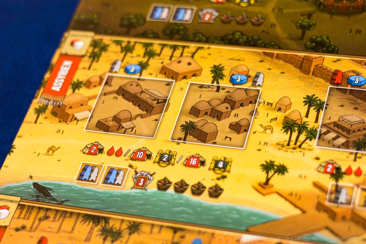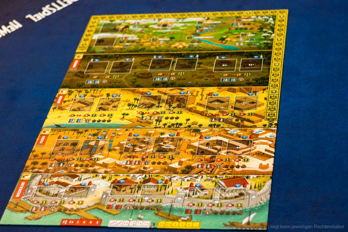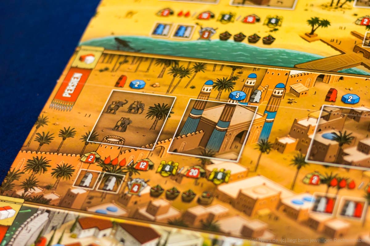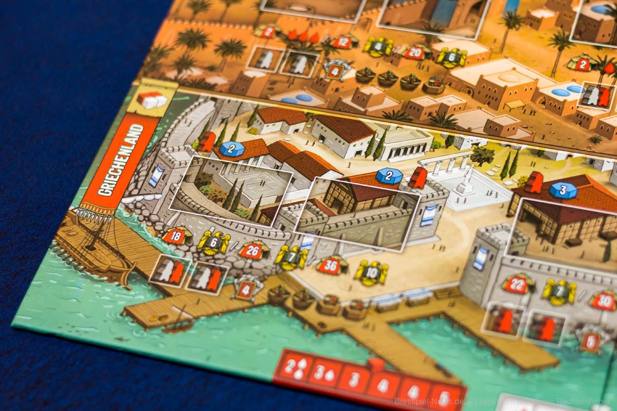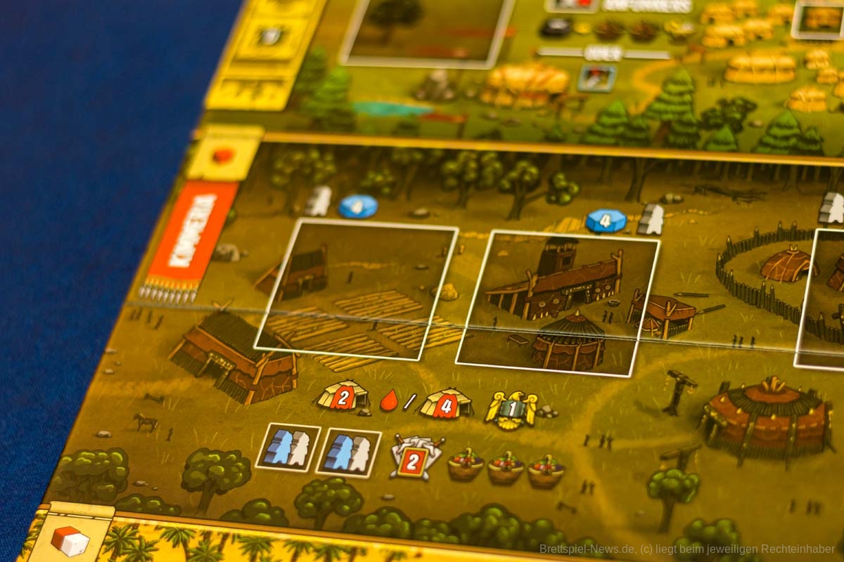 Das Spielbrett wirkt allerdings etwas überladen und nicht alle wichtigen Informationen fallen gleich ins Auge.