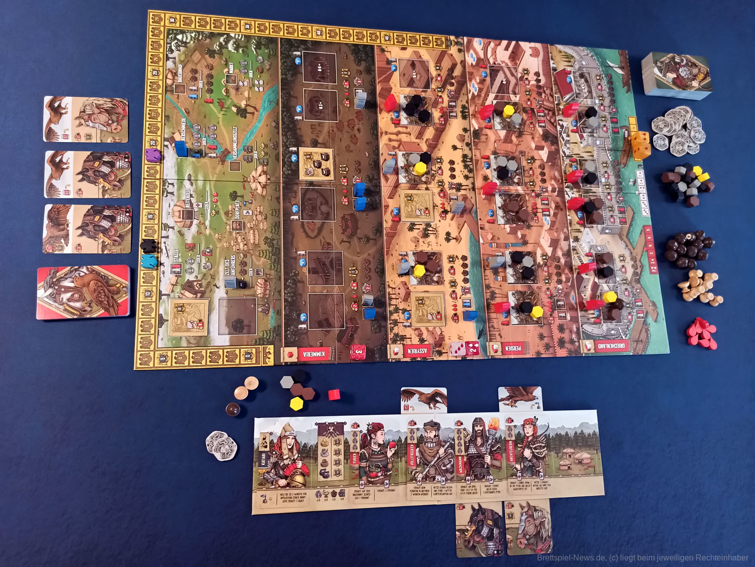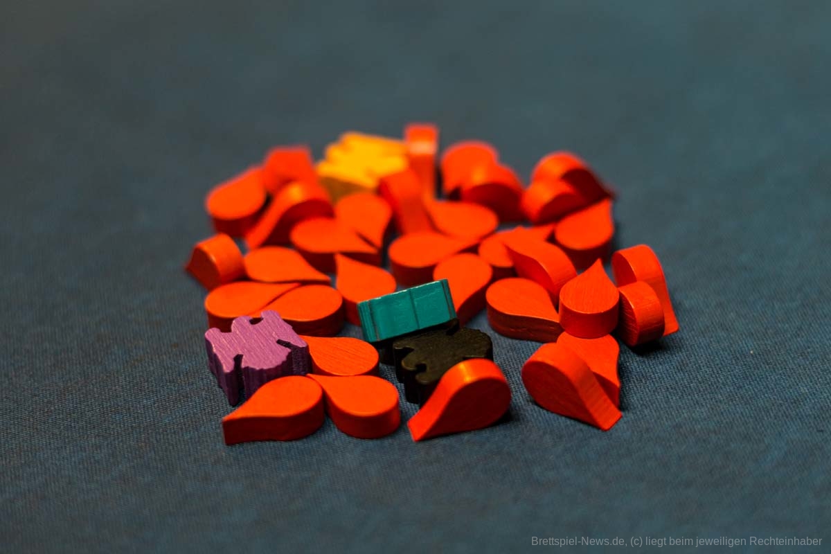 Das Spielmaterial ist von guter Qualität. Die Ressourcen und Figuren bestehen aus Holz. Die Karten sind stabil, der Spielkarton ist sehr stabil.