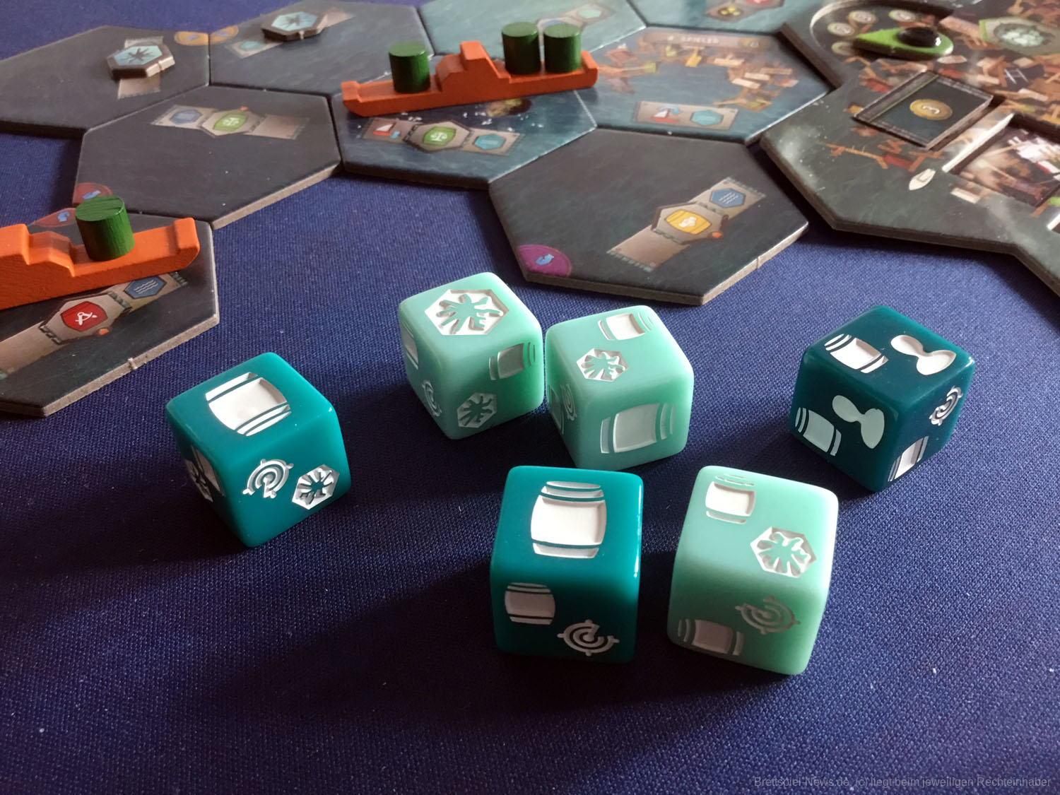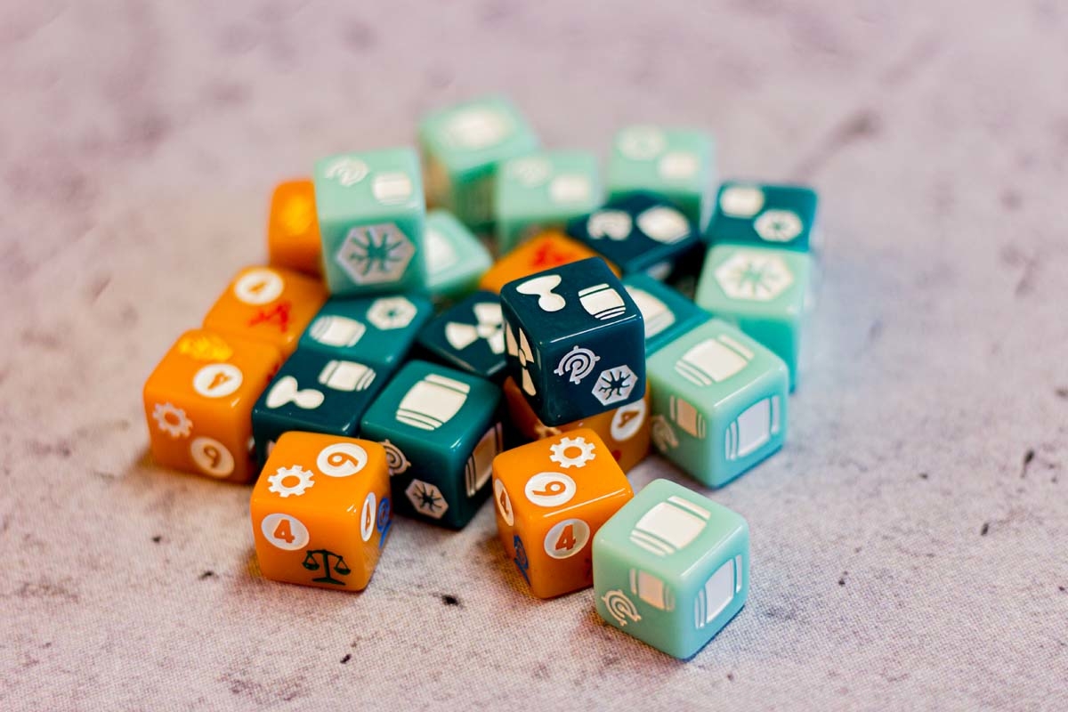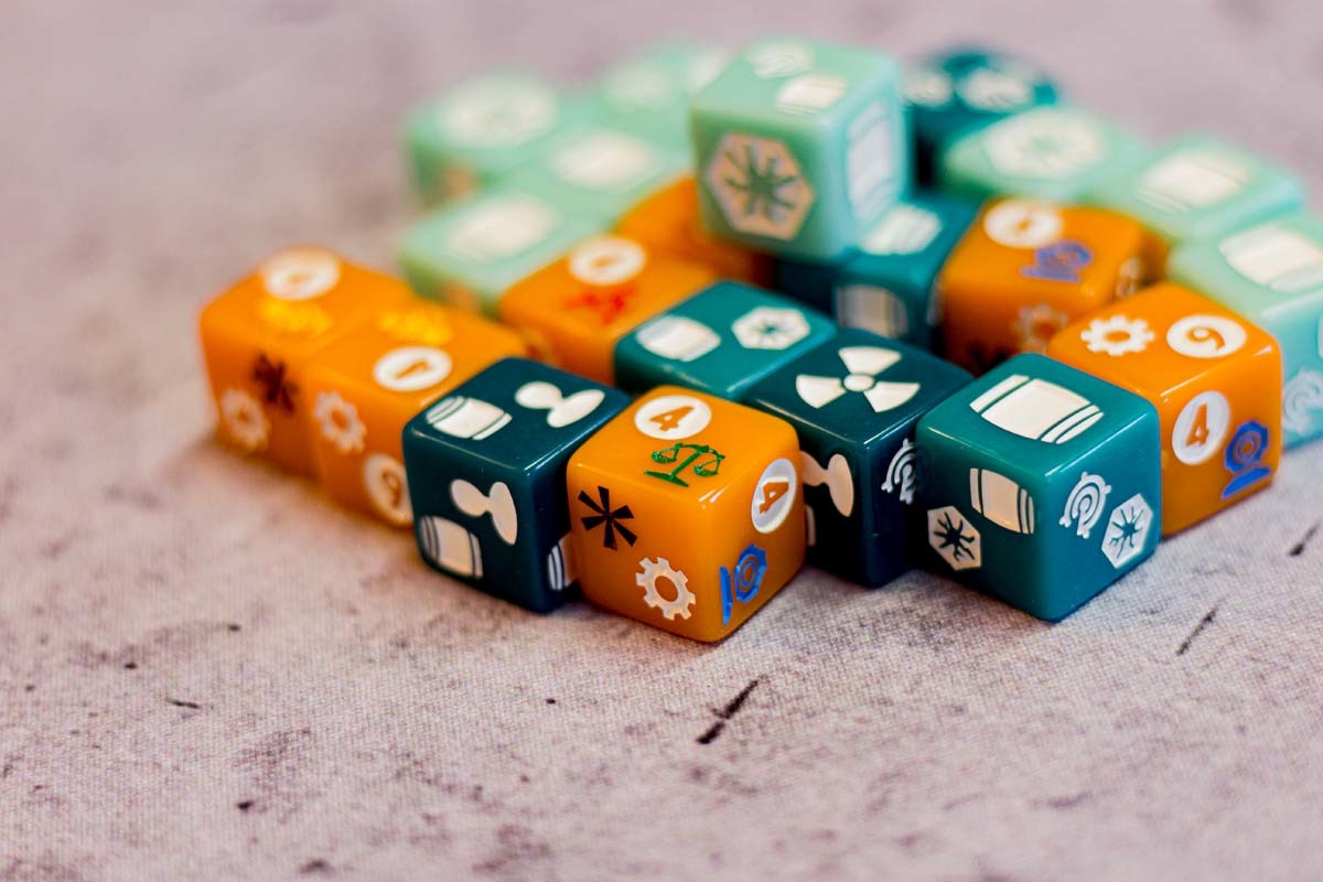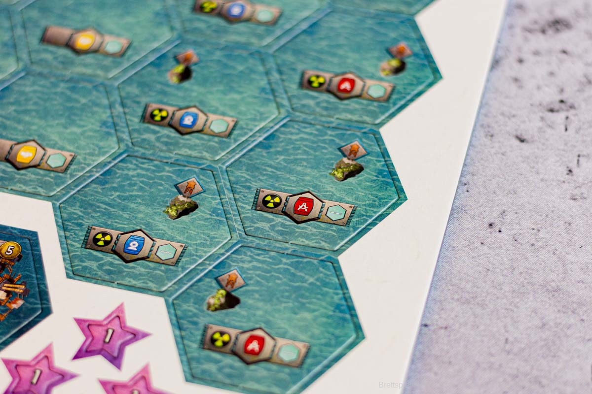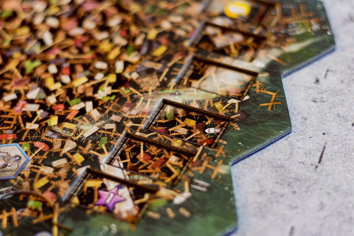 An diesem Punkt angelangt, fühlt sich FLOTILLA wie eine anstrengende Reise an, eine lohnende zwar, aber dennoch auch eine kräftezehrende Unternehmung in einer postapokalyptischen Welt, die vor 70 Jahren spielt. Die Spielgeschichte schien mir düster mit den radioaktiven Seegebieten und der unterschwelligen Hoffnungslosigkeit und all diesen Menschen, denen ein Leben als Müllsammler und Resteverwerter auferlegt wird. Doch das stört niemanden im Spiel und die tödliche Radioaktivität ist eben das notwendige Übel eines umtriebigen Entdeckerlebens. Alle Bewohner dieser Welt graben im Müll und lassen lethargisch ihr Leben für die Ressourcenbeschaffung. Diese düstere Seite spielt bei FLOTILLA jedoch keine Rolle. Die Karten, die eine sehr gute Verteilung von Männern und Frauen aufweisen (es sind gleich viele), sind farbenfroh und das vorherrschende Zwei-Kasten-System aus Sink- und Skysidern und die allumfassende Herrschaft aus vier Gilden scheinen dem Spieler förmlich zu zuflüstern: „Hey, mach dir keine Sorgen. Das Leben ist schön und voller Möglichkeiten. Und wenn dir die verstrahlten Haare ausfallen, dann fahr‘ halt woanders hin.“