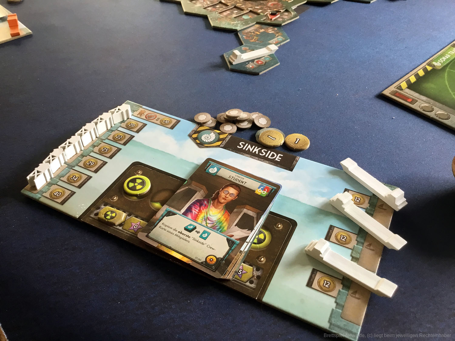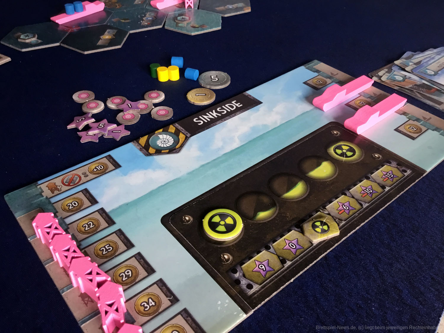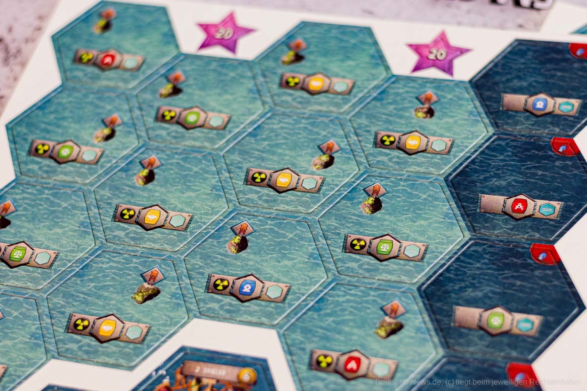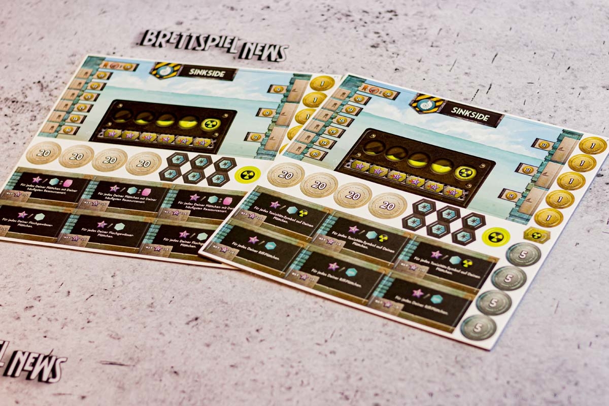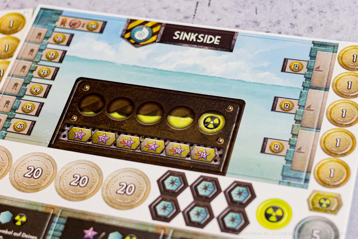 Die Verzahnung der beiden Seiten mit ihren verschiedenen Aktionen ist gut und greift an vielen Stellen ineinander. Alles im Spiel ist auf den Seitenwechsel zugeschnitten. Zwar ist es nicht nötig, zu wechseln, dennoch fragen sich alle Spieler insgeheim, wann die anderen wechseln oder der ideale Zeitpunkt erreicht ist, um selbst die Schwimmflossen an den Nagel zu hängen. Ressourcen werden mit steigendem Angebot immer billiger und bald sehnen Sinksider den Moment herbei, da ein reicher Skysider daher spaziert kommt und sich besinnungslos kauft. Jede Tauchfahrt ist riskant und das nervige Radar kann nur von einem Skysider auf lukrativere Bereiche versetzt werden.