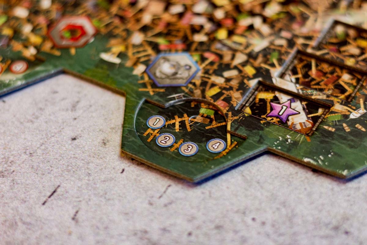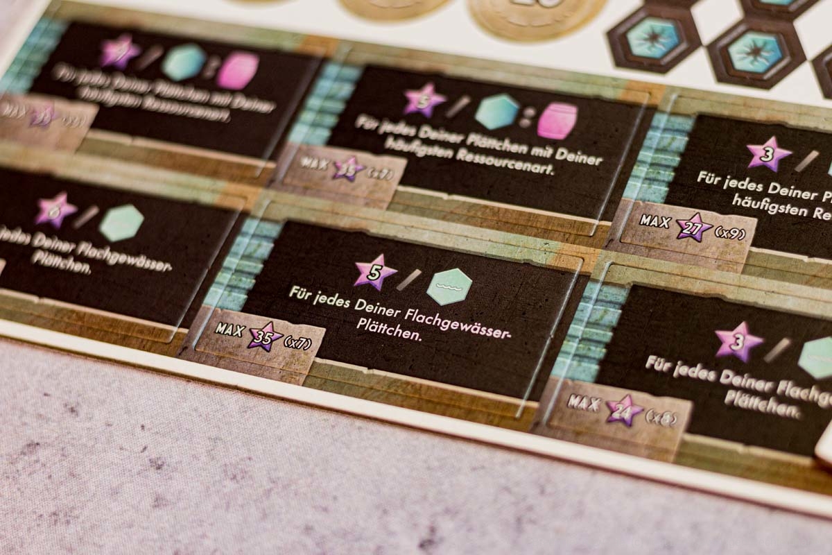 Zielplättchen zu erfüllen, ist eine teure Angelegenheit. Fehlen passende Bauplätze, kann jedoch mit ein bisschen mehr Geld ein schwimmender Turm errichtet werden. Ob sich der Aufwand lohnt, muss jeder Spieler selbst entscheiden. Doch eben genau diese Entscheidungen sind schwer zu treffen. Zum einen gibt es reichlich Alternativen, zum anderen sind die Verzahnungen gerade am Anfang so zahlreich, dass selbst mit den kleinen Spielhilfen der Überblick verloren geht. Die Vielzahl kleiner Regeln und die Wechselwirkungen machen eine fundierte Entscheidung schwer.