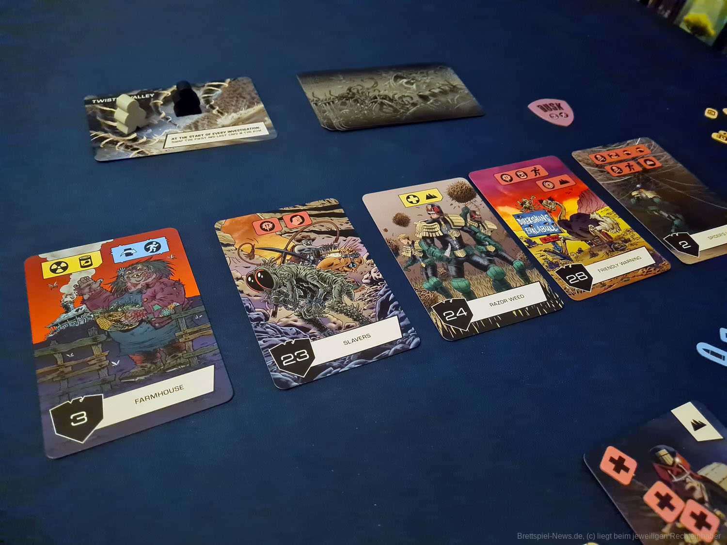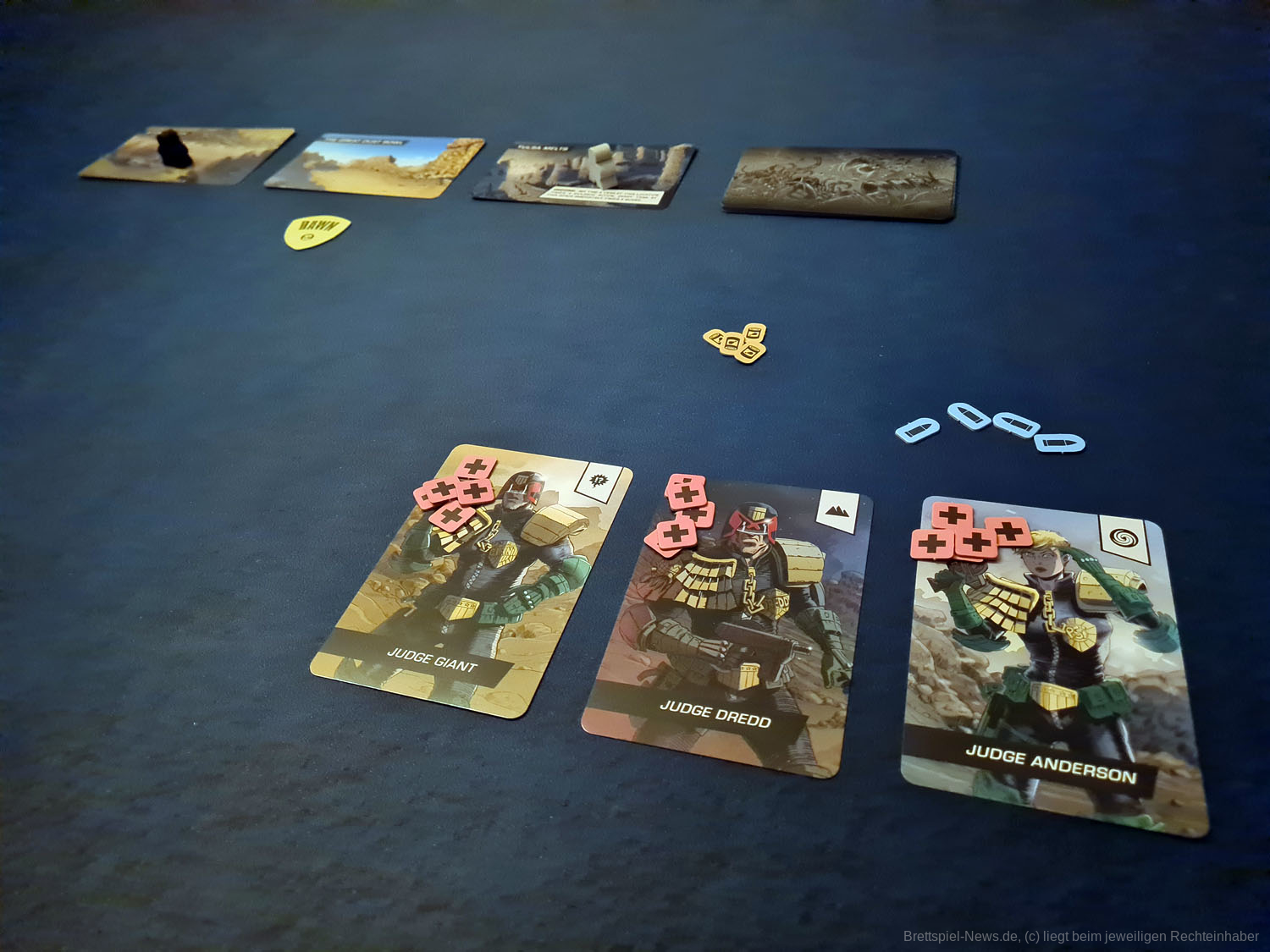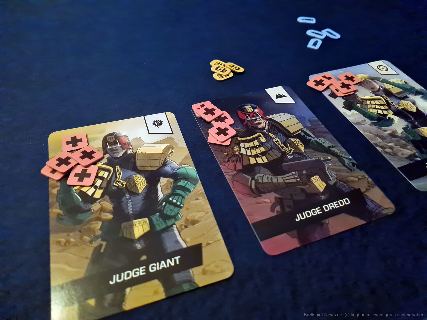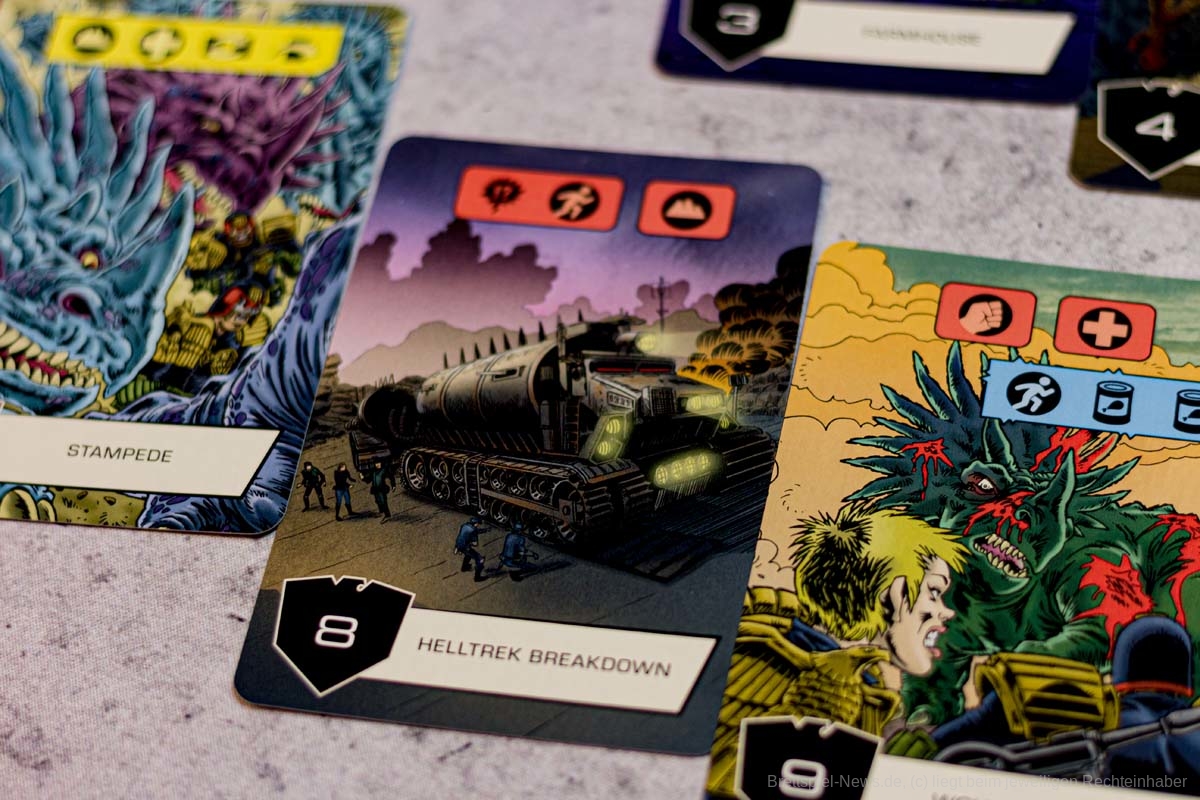 Aus diesem Grund ist meiner Meinung nach der 4-Spielermodus am besten für JUDGE DREDD geeignet, aber auch nur, weil hier am meisten Karten im Spiel sind und die Wahrscheinlichkeit, dass eine positive Karte dabei ist, am höchsten ist.