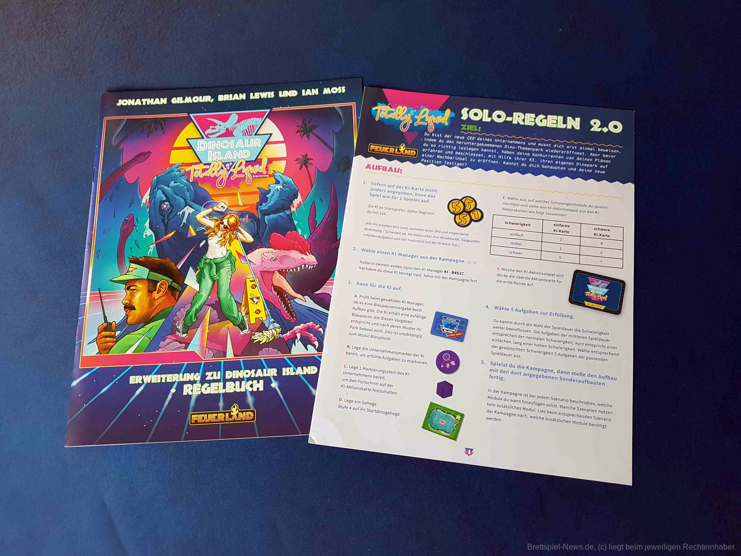 Neben den gerade vorgestellten Modulen enthält DINOSAUR ISLAND - TOTALLY LIQUID neue Solo-Regeln sowie eine Kampagne, in der sich die Spieler:innen in fünf Missionen einer KI stellen müssen.