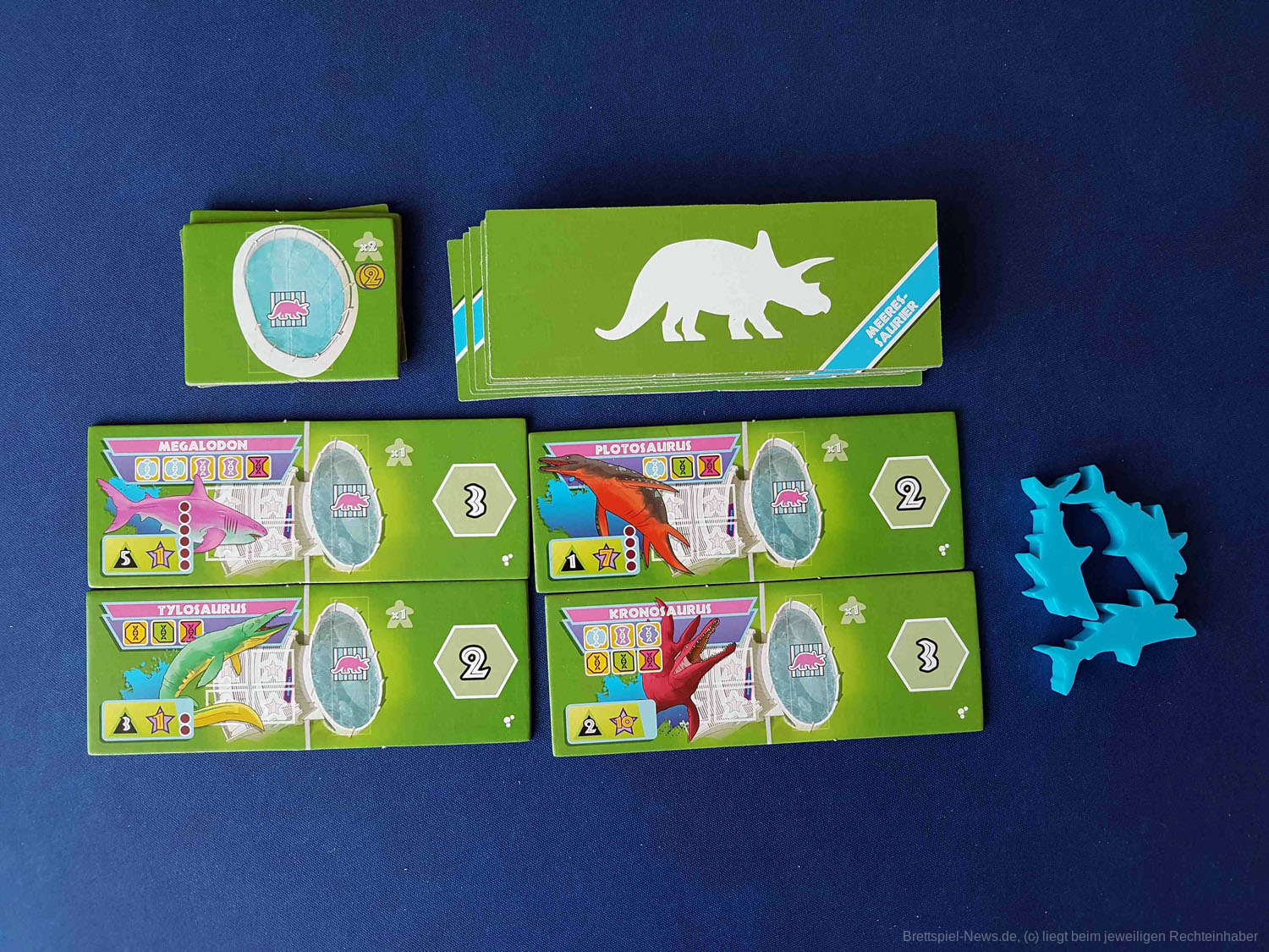 Dinosaurier gab es zu Lande, aber auch zu Wasser. Klar, dass in der Erweiterung nun auch die Baupläne von Meeressauriern erforscht werden können. Diese haben anders als ihre Vettern an Land jedoch variable Kosten. Ansonsten verhalten sie sich aber genauso.