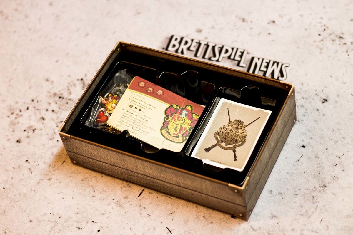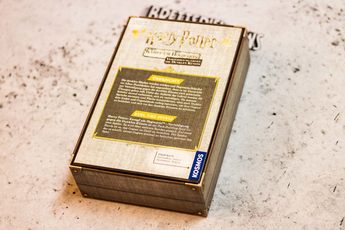 VERTEIDIGUNG GEGEN DIE DUNKLEN KÜNSTE ist ein Spin-off-Spiel zum großen KAMPF UM HOGWARTS-Spiel. Während dieses alle Filme nacheinander im kooperativen Modus abgeklappert hat, deckt das kleine kompetitive Zweipersonenspiel nun die kurze Sequenz aus dem zweiten Teil „Die Kammer des Schreckens“ ab, in der die Hogwartsschüler:innen von Gilderoy Lockhart das Duellieren lernen. Alles in allem unterstreicht das Spielmaterial gut das Spielthema und entführt in die Welt von Harry Potter und Hogwarts.