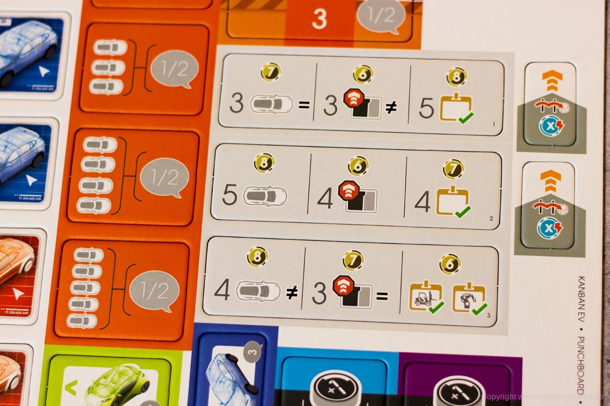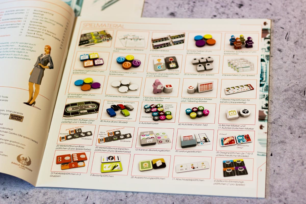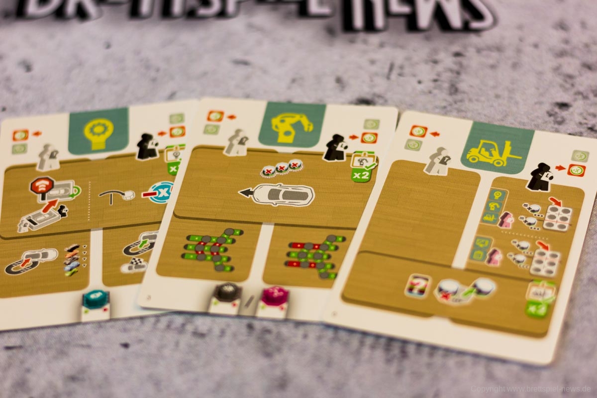 Du bist mit deinem aktuellen Job sehr zufrieden und möchtest keine Überstunden in der Industriehalle schuften? Beim Lesen der Wortbedeutung des japanischen Wortes KANBAN, welches die Methode zur Prozessorientierung, die effiziente Fließbandarbeit, die zeitoptimale Fertigung und problemlose Arbeitsabläufe meint, empfindest du nur Anstrengung? Dann würdest du bei diesem Spiel wahrscheinlich auch genau das finden: Arbeit. Noch in der dritten Partie sind uns Regelfehler unterlaufen und wir haben Details vergessen, denn die einzelnen Schräubchen sind auch sehr kleinteilig. Die Regeln verlangen nach intensiver Beschäftigung. Wahrscheinlich fällt gerade den Spielern, die die Holzautos von der Fertigung zur Teststrecke stellen, anstatt zu fahren, auch auf, dass die Abfolge des Versetzens der Arbeiter in der Auswahlphase etwas verwirrend sein kann und dass es mit zwei Spielern mehr Aufwand bedeutet, unterschiedliche Fahrzeugmodelle vom Stapel zu lassen, als mit einer größeren Belegschaft. Jede Wochenwertung verlangt von ihnen einen genauen Blick in die Fabrikstatuten, was denn jetzt wieder wie und warum gewertet wird, weil die beigelegte Hilfstafel ihrer Funktion nicht gerecht wird. Die strenge Sandra kann diese Fortbildungsmuffel durch Minuspunkte zudem schnell frustrieren, die Ellenbogenkultur der Arbeitskollegen tut ihr übriges.