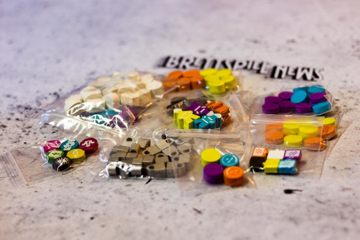 Zwei Regelhefte, für das normale Spiel und für das Solospiel, befinden sich in der riesigen Box. Die vielen Marker und Plättchen werden mit Fachbegriffen ausgestattet, was das Thema zwar gut einfängt, das Regellesen aber unnötig kompliziert gestaltet. Die zentralen Mechanismen und Abläufe hätten ausführlicher und bebilderter behandelt werden können, um einen reibungsloseren Spielablauf möglich zu machen.