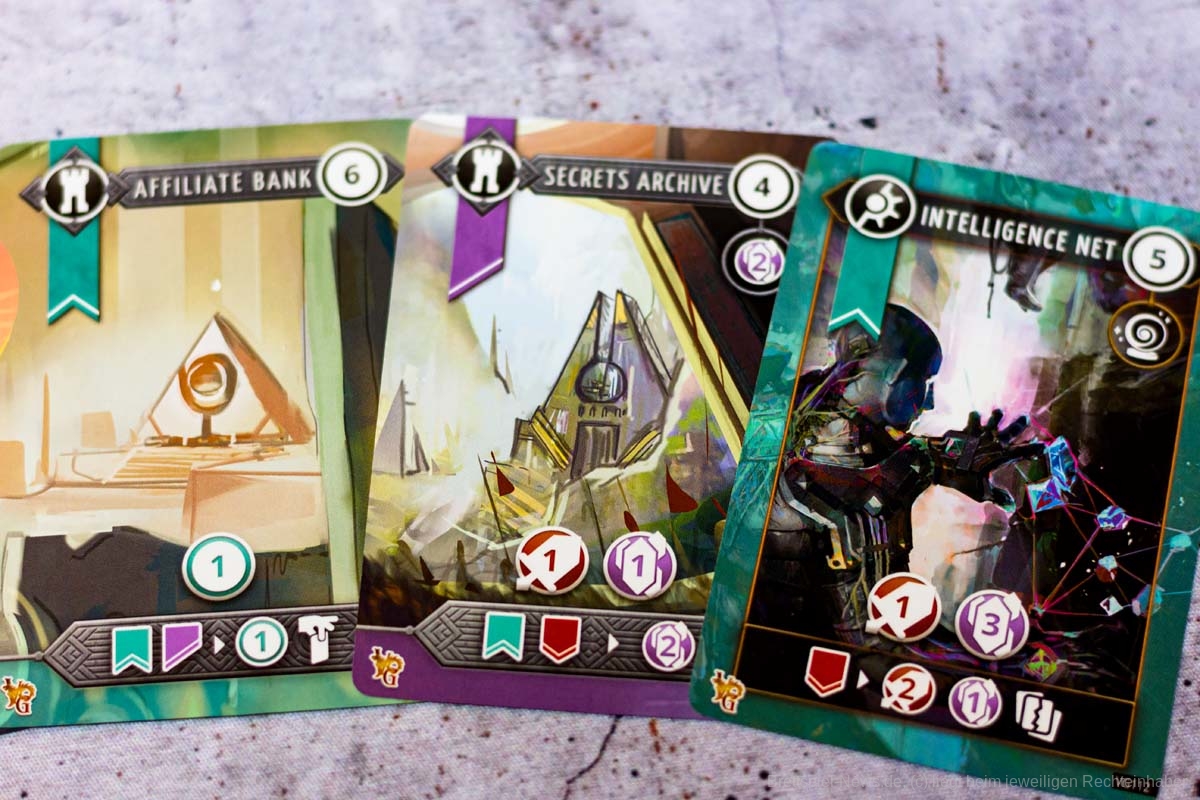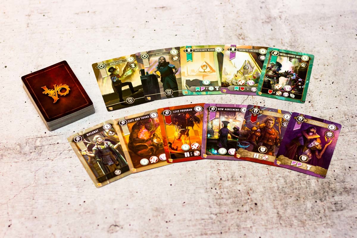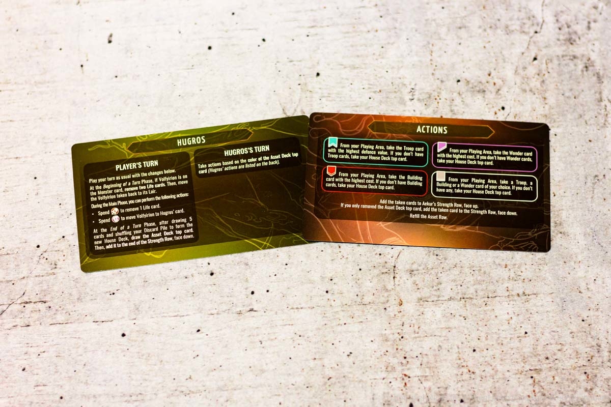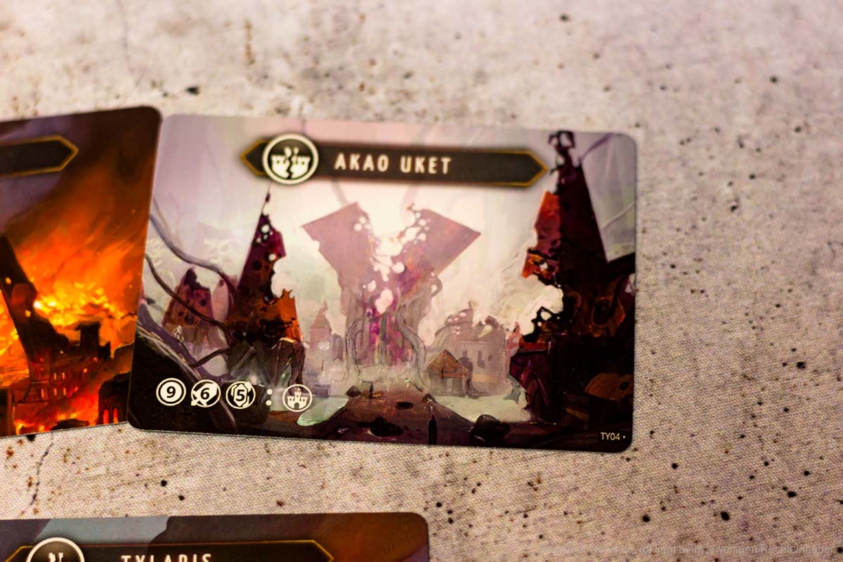 Die Karten besitzen drei unterschiedliche Ressourcen, mit denen die Spielenden unterschiedliche Strategien verfolgen können. Mit den türkisen Kommandopunkten können Karten erworben werden, mit den roten Kampfpunkten die Städte des Gegners zerstört oder Karten aus Volfyirions Hort erkämpft werden und mit den violetten Wissenspunkten werden Karten aus der zentralen Auslage ausgetauscht oder Volfyirion wird davon überzeugt, dass er einer gegnerischen Stadt einen Besuch abstatten sollte.