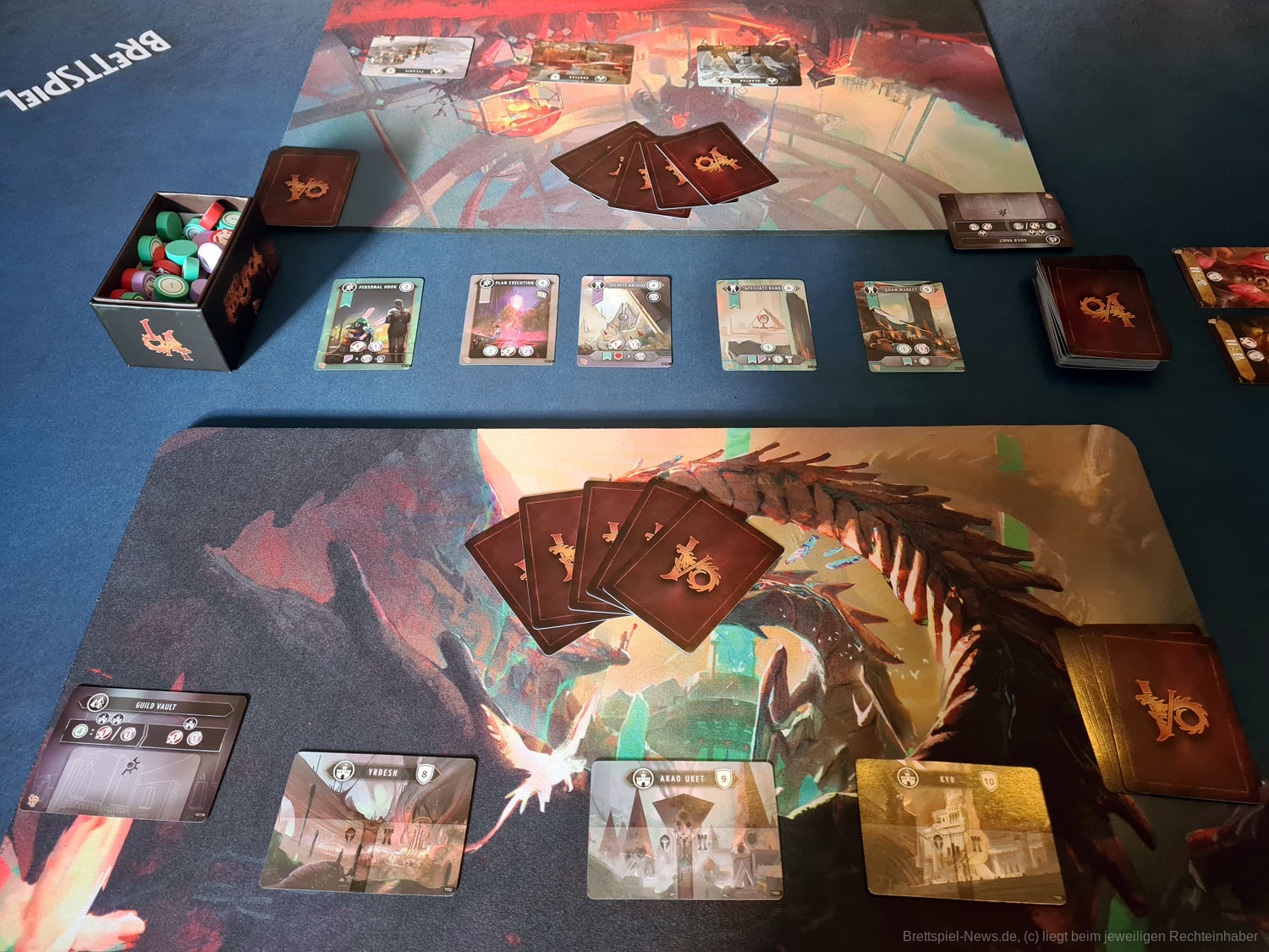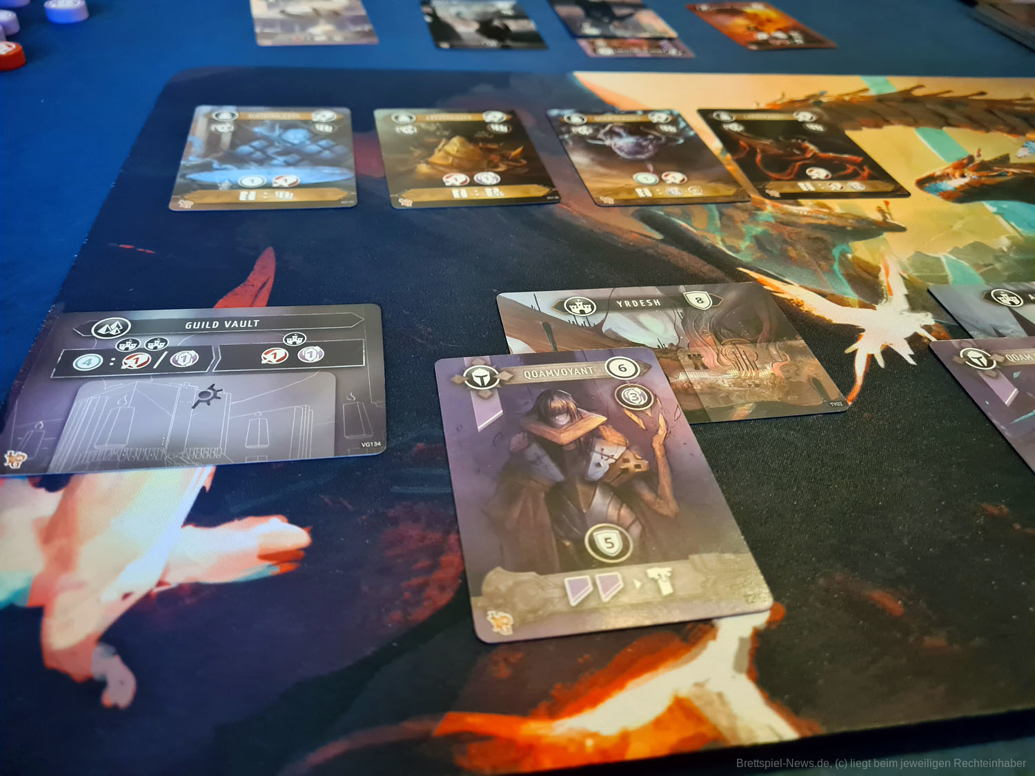 Interessierte Spielgruppen, die sich mit den genannten strategischen Elementen nicht so ganz anfreunden können, sollten hier aber noch nicht abschalten. TABULA GAMES haben angekündigt, dass VOLFYIRION GUILDS weitere kleine Erweiterungen in der Kickstarter-Kampagne erhalten soll. So sollen (ähnlich wie im Basisspiel) neue Mechaniken und/oder Handicaps zum Chancenausgleich für neuen Spielenden geboten werden. Diese konnten wir im Prototypen aber leider noch nicht testen.