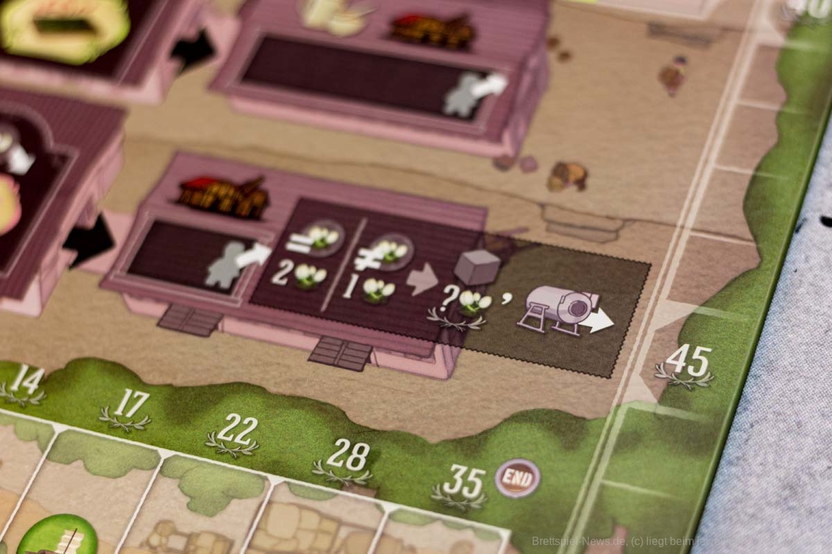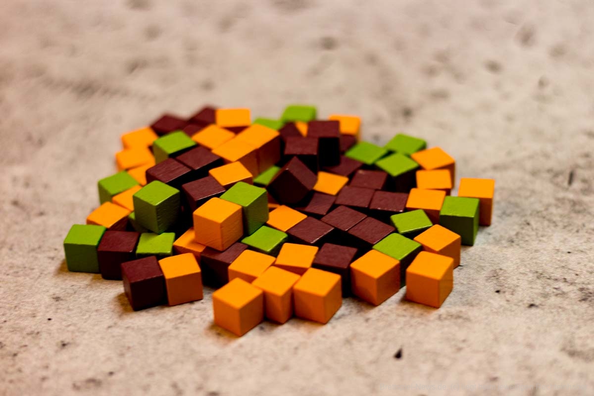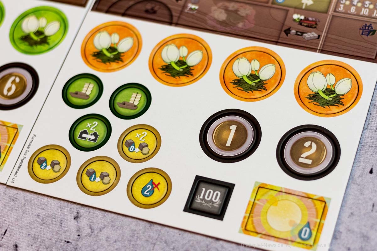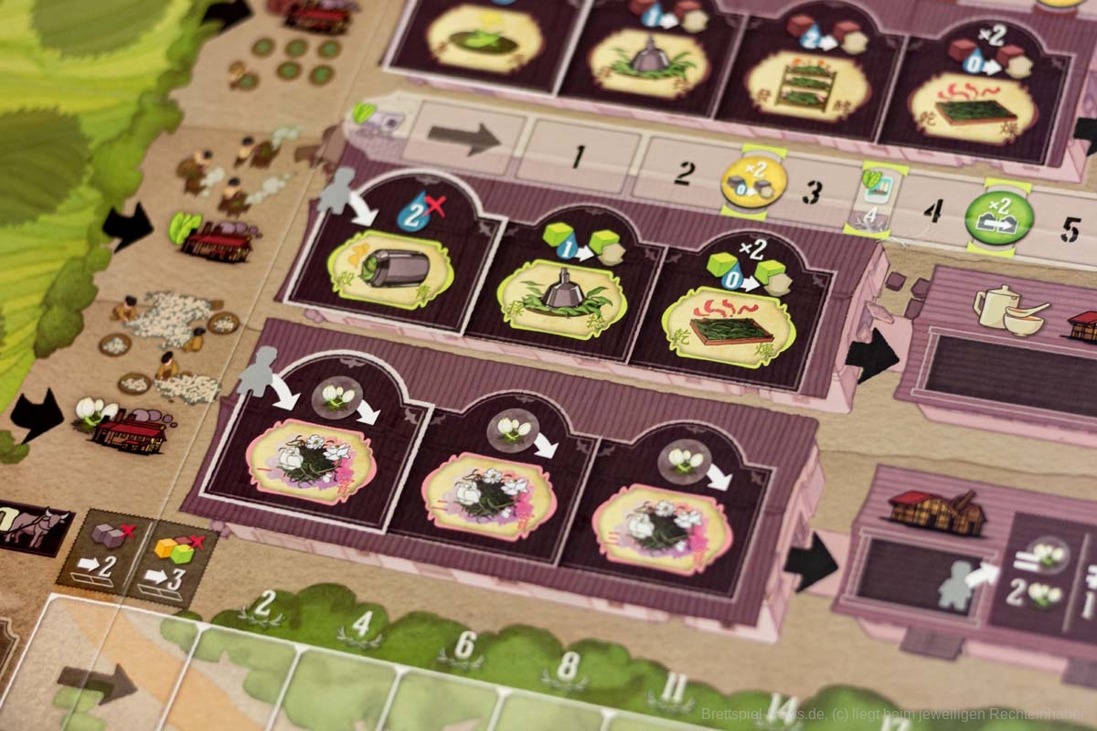 Zusätzlich ist anzumerken, dass das Spielertableau ein wenig zu klein geraten ist. Da der Großteil des Spiels auf diesem stattfindet, wäre es hilfreich gewesen, die kleinen Flächen ein wenig zu entzerren und mehr Platz für die Tee-Verarbeitung und die Lagerung der Tee-Würfel bereitzustellen.