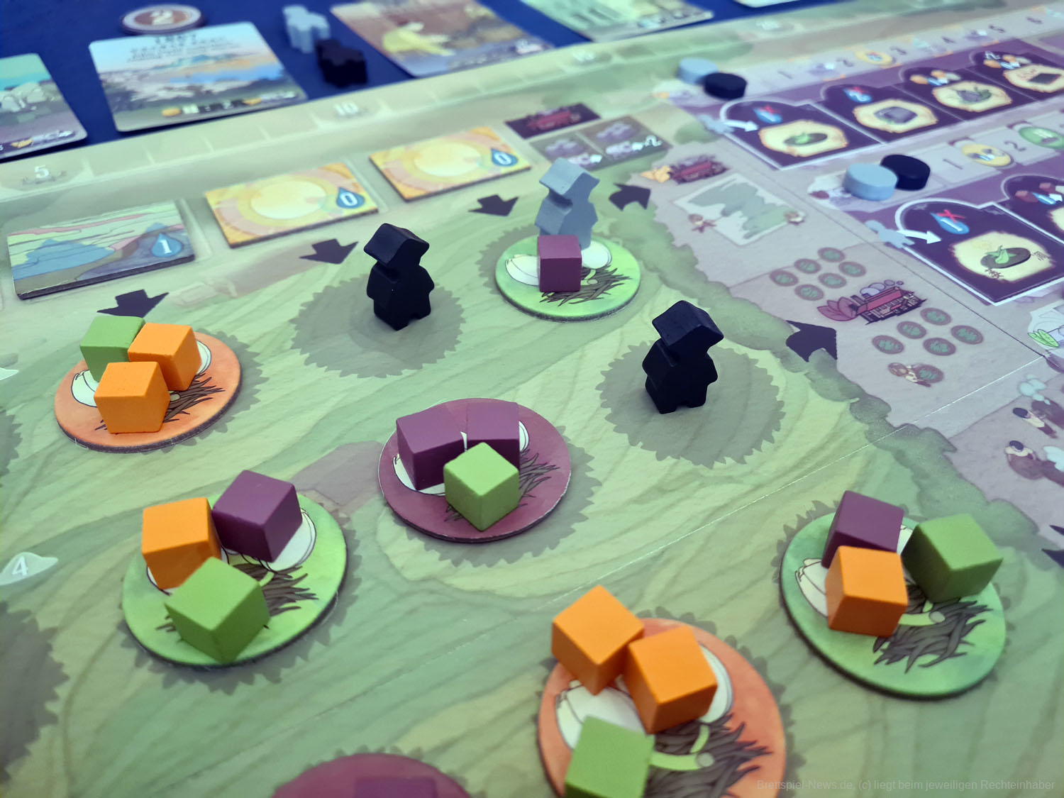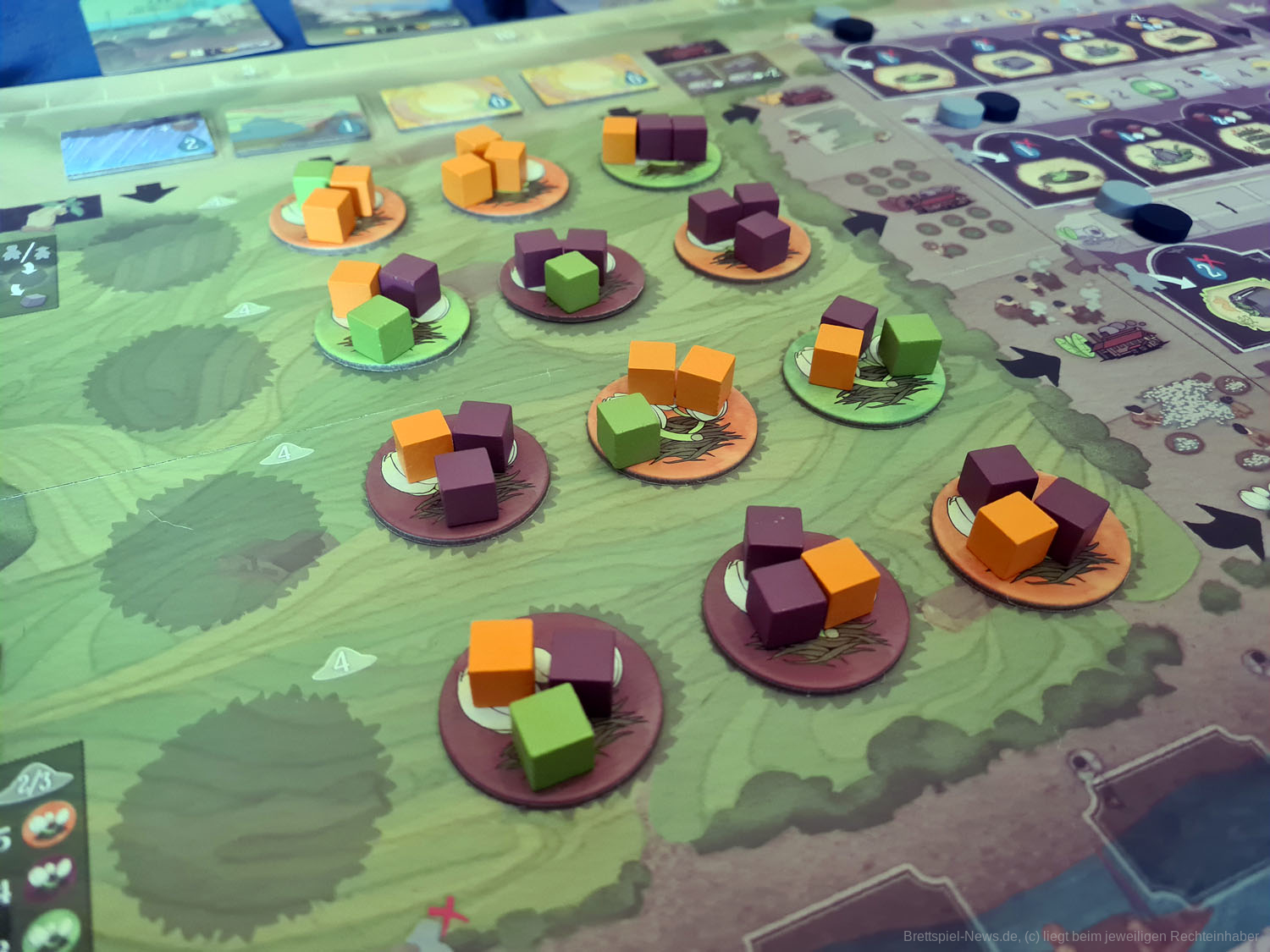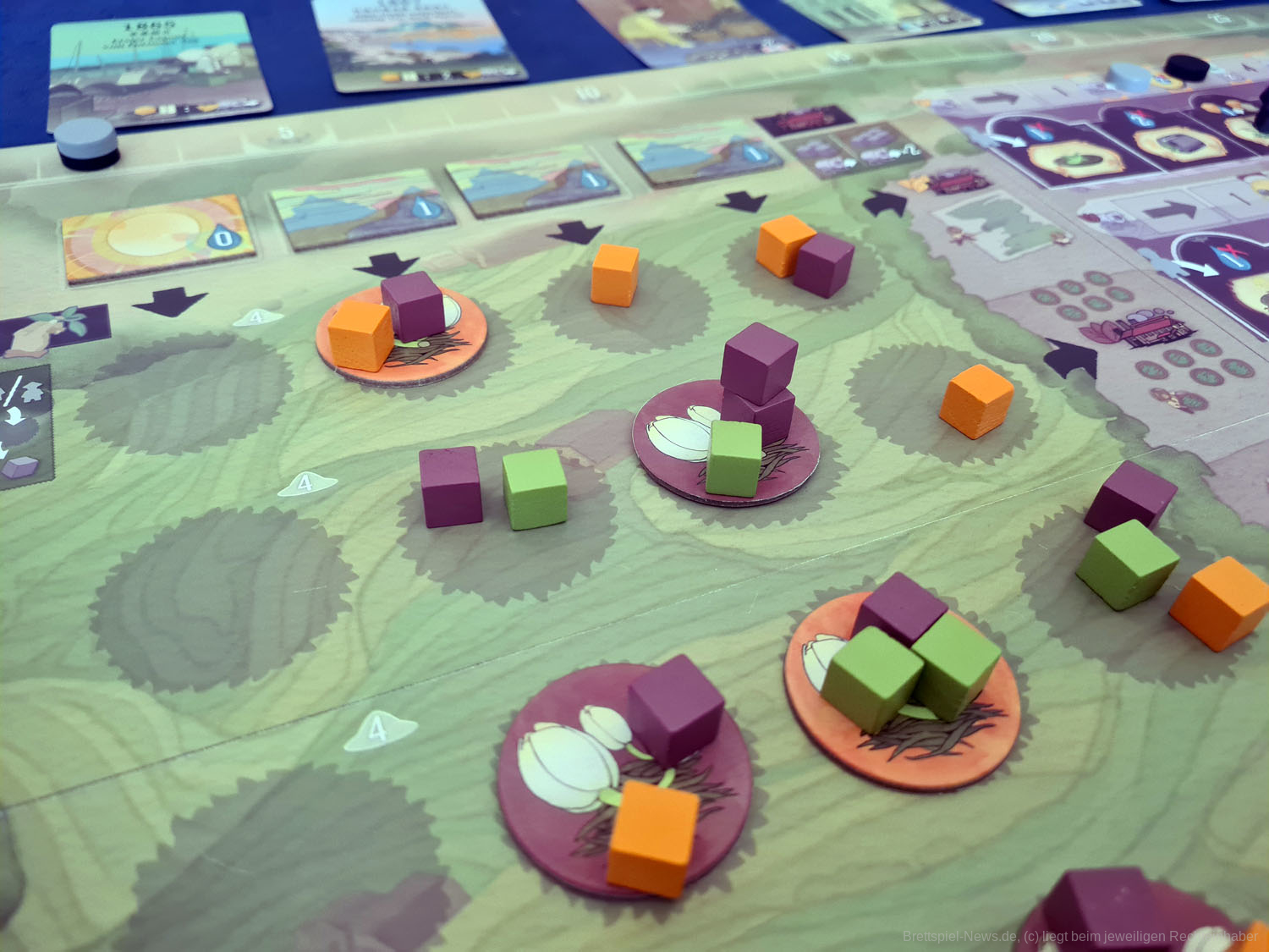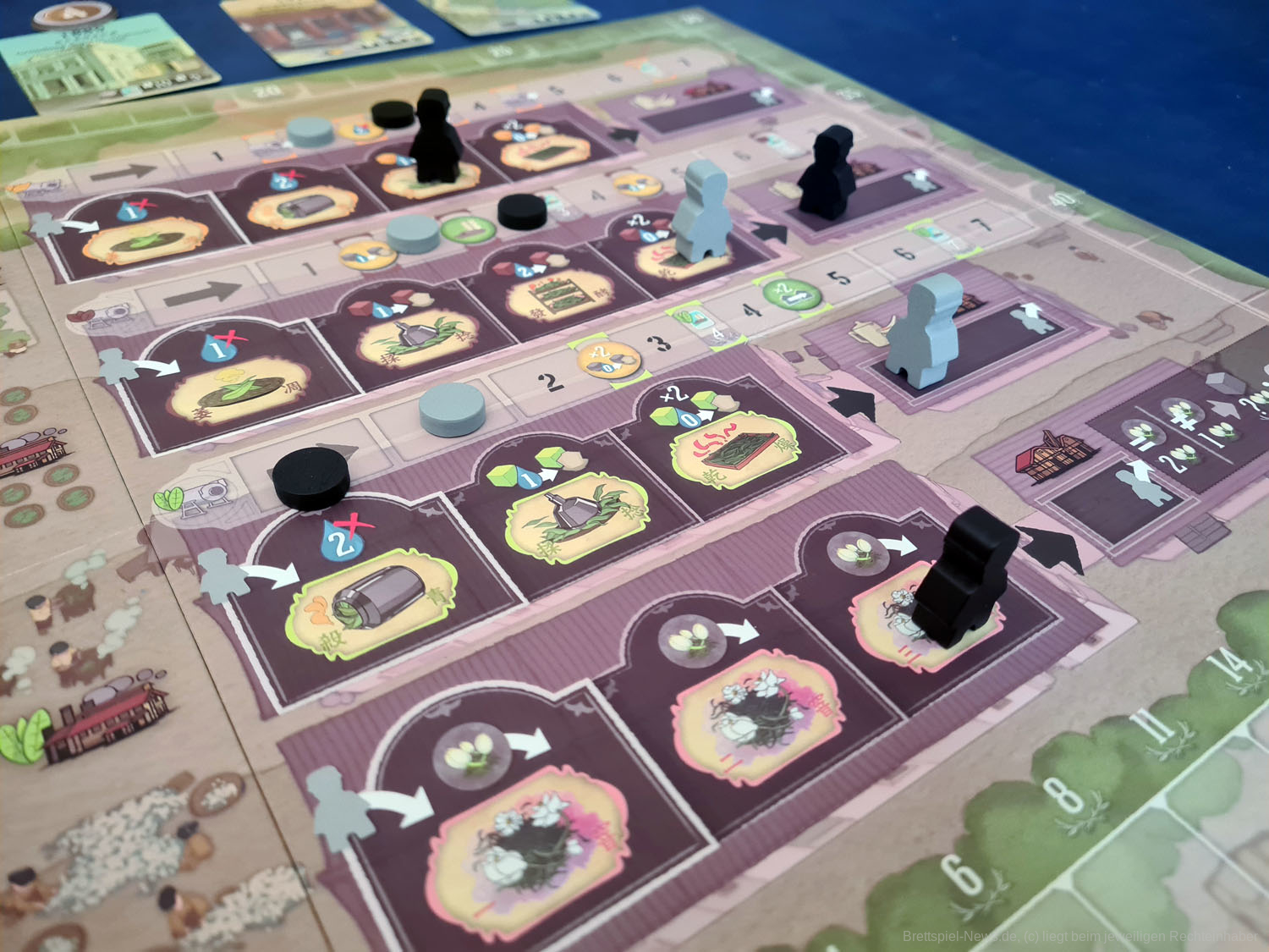 Zusätzlich ist anzumerken, dass das Spielertableau ein wenig zu klein geraten ist. Da der Großteil des Spiels auf diesem stattfindet, wäre es hilfreich gewesen, die kleinen Flächen ein wenig zu entzerren und mehr Platz für die Tee-Verarbeitung und die Lagerung der Tee-Würfel bereitzustellen.