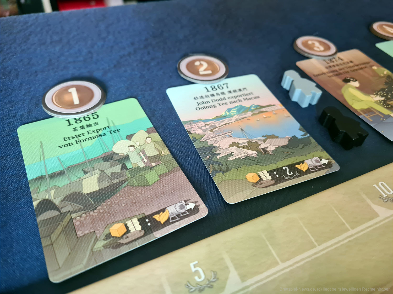 FORMOSA TEE schafft es, das gewählte Thema so gut umzusetzen, dass es einen bleibenden Eindruck hinterlässt. Es erzählt die vietnamesische Tee-Geschichte ganz nebenbei, ohne Spielern den geschichtlichen Anteil aufzwingen zu wollen. Die kleinen Informationstexte auf den „Historisches Ereignis“-Karten sind klein genug, dass uninteressierte Spieler sich voll und ganz auf die Regeln konzentrieren können, während interessierte Spieler animiert werden, sich tiefer mit dem Thema zu beschäftigen (wenn es um Geschichte geht, muss mir das nicht zweimal gesagt werden, zumal ich mit vietnamesischer Geschichte bislang nicht in Berührung gekommen bin!).