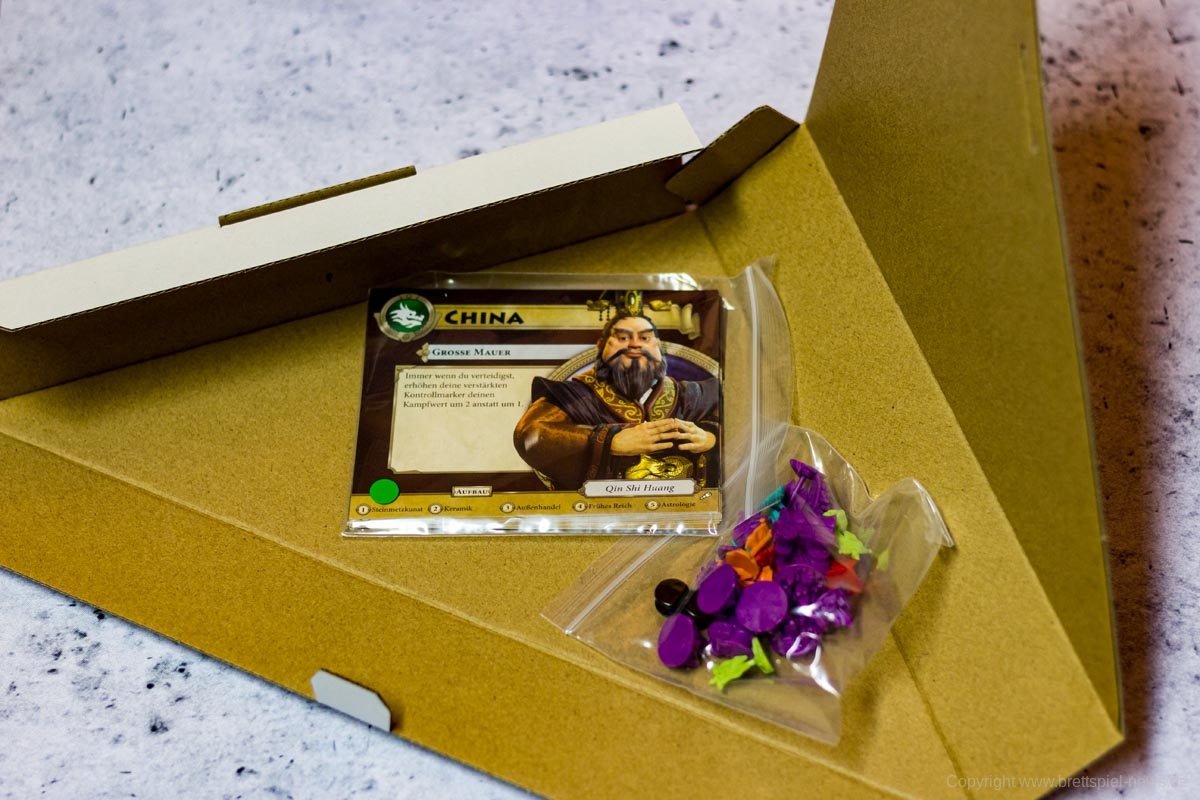 Ein weiterer Kritikpunkt sind für mich die Siegkarten. Diese sind zwar erweitert worden, fühlen sich aber dennoch etwas restriktiv an. So ist ein Volk wie die Chinesen, das die eigenen verstärkten Kontrollmarker verbessert, sehr interessant. Aber wenn keine Siegkarte ausliegt, die ebendiese verstärkten Kontrollmarker verlangt, dann lohnt es sich kaum auf sie zu spielen. Die Zielkarten, die noch dazu keine allzu große Varianz an Siegbedingungen präsentieren, geben einem das Gefühl eines recht eng geschnürten Korsetts. Bewegungsfreiheit ist etwas anderes.