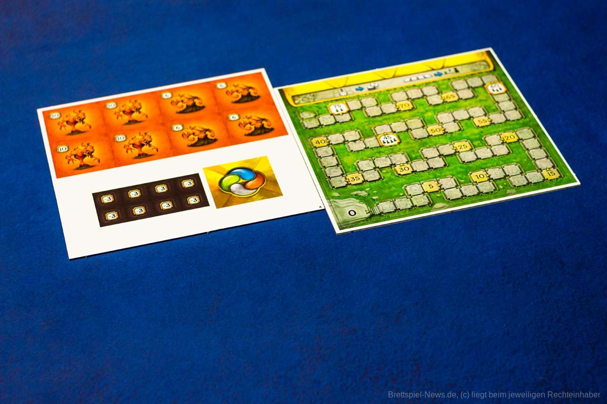 Wurde der letzte Pfeil eines Plättchens abgedeckt, wird das Plättchen auf die Rückseite gedreht und die Punkte des Plättchens werden dem Spielenden auf einem zentralen Spielertableau angerechnet.