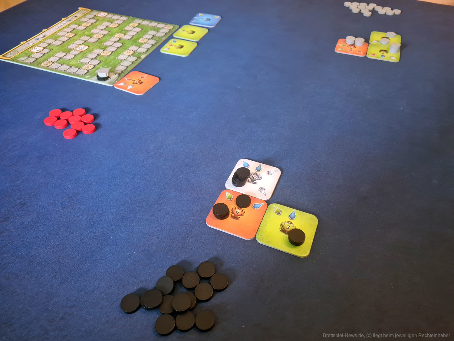 Als SAGANI auf meinen Tisch gekommen ist musste ich sehr schmunzeln. Zum einen war es passend, dass ein Ostfriese die Arbeit eines Ostfriesen bewerten darf, zum anderen traf das sehr prominent vertretene Artwork bei mir einen Nerv. Die kleinen Elementarwesen, gepaart mit dem sehr einfach anmutenden Spielgeschehen verbreiteten gleich gute Laune. SAGANI erfüllt das, was es sein möchte, sehr gut. Es hat kaum Lernzeit, ist schnell zu spielen und hat einen guten Tiefgang, da die Spielenden verschiedene Strategien im Aufbau ihres Spielbereiches verfolgen können.