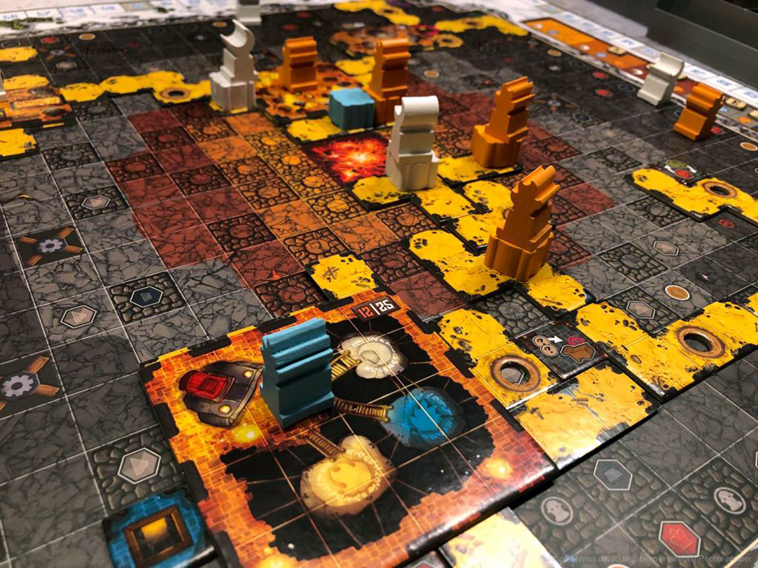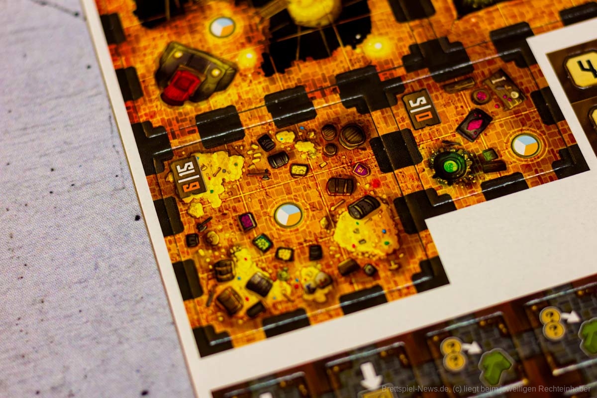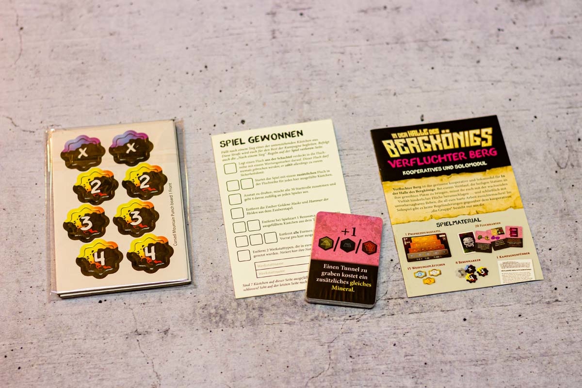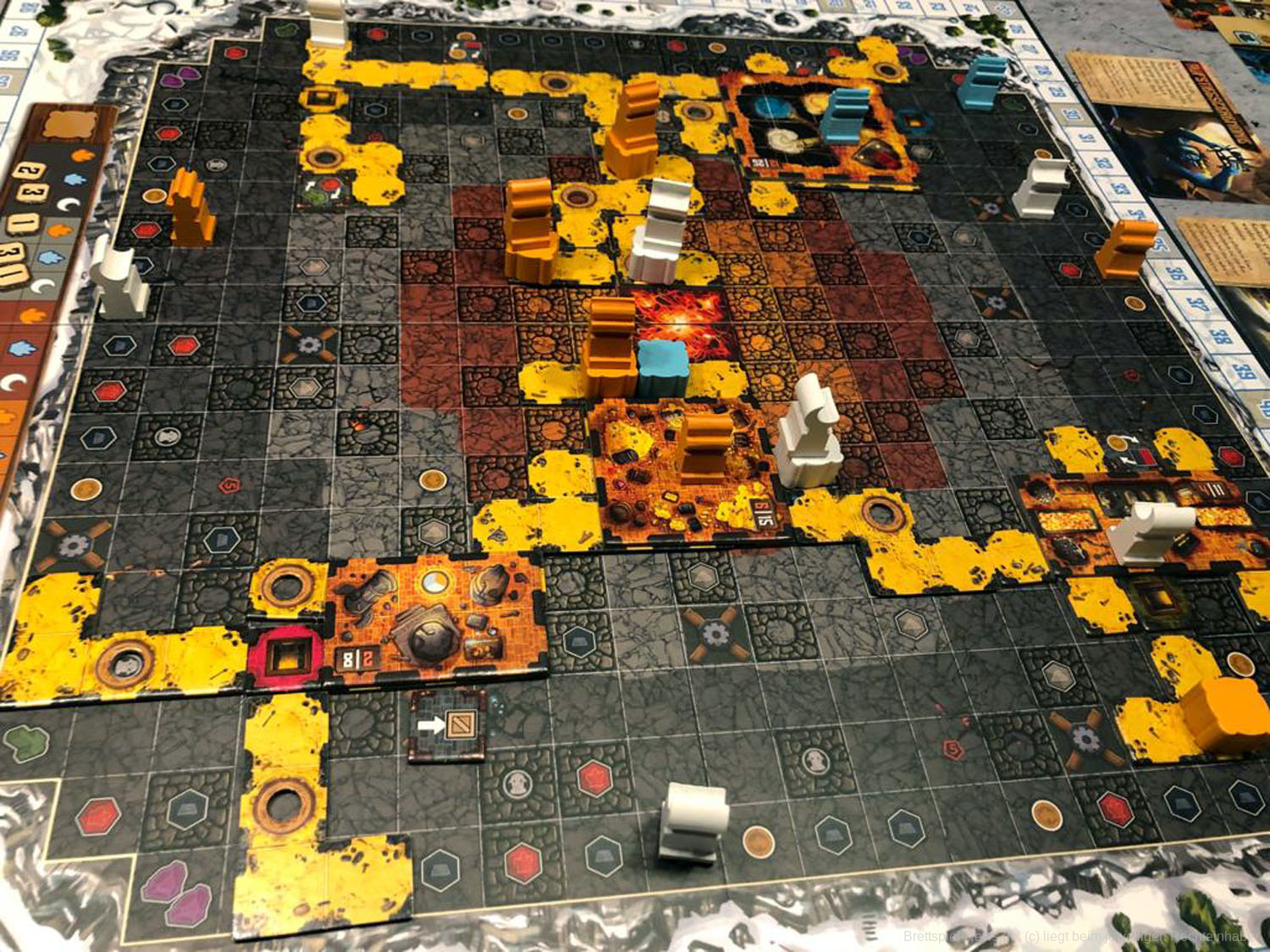 Generell punktet das Spiel durch seine verschiedenen Modi. Denn soll der Konkurrenzdruck vermieden werden, kann sich die Gruppe zusammenschließen und im Koop-Spiel (das dem Solomodul entspricht) versuchen, trotz unvorhersehbarer Beben und Flüche die gestellten Aufgaben zu erfüllen. Dieser Modus bringt sogar eine Kampagne mit, die je nach Sieg oder Niederlage für die nächste Koop-Partie Vor- oder Nachteile ins Spiel bringt. Zu zweit hat er bei uns allerdings nicht gezündet, da sich die strategischen Möglichkeiten für den Gewinn in Grenzen halten.