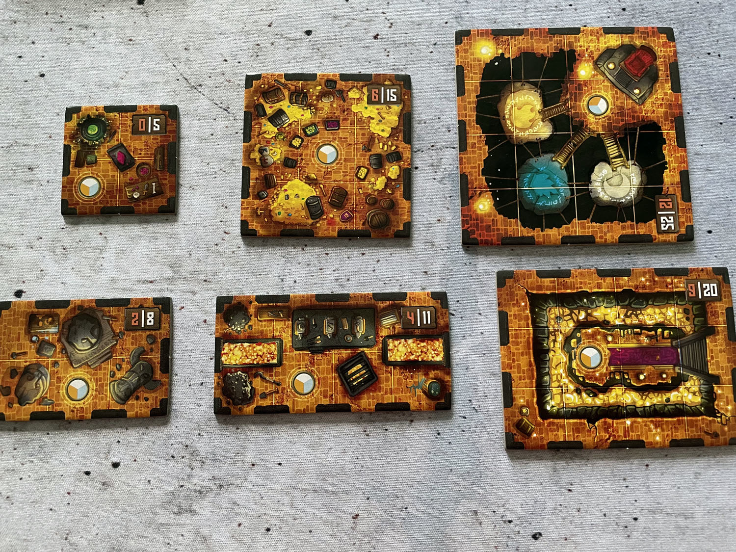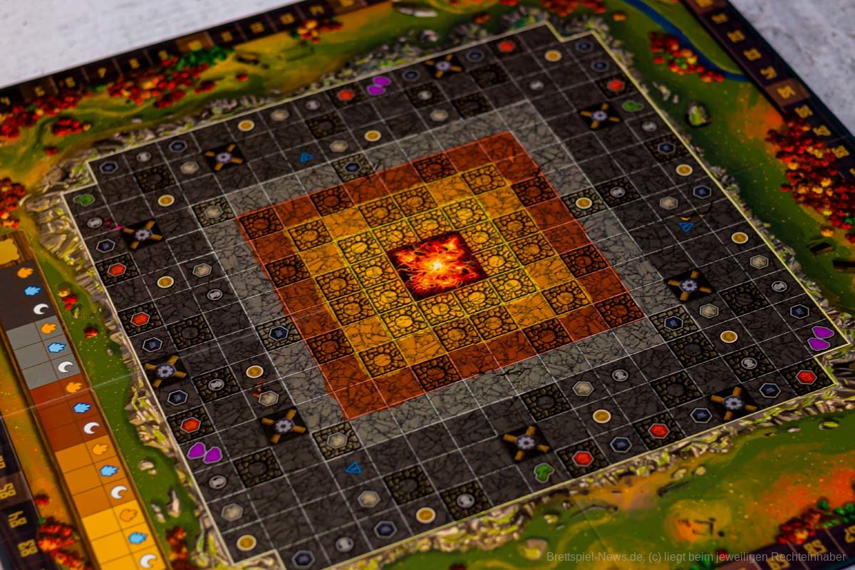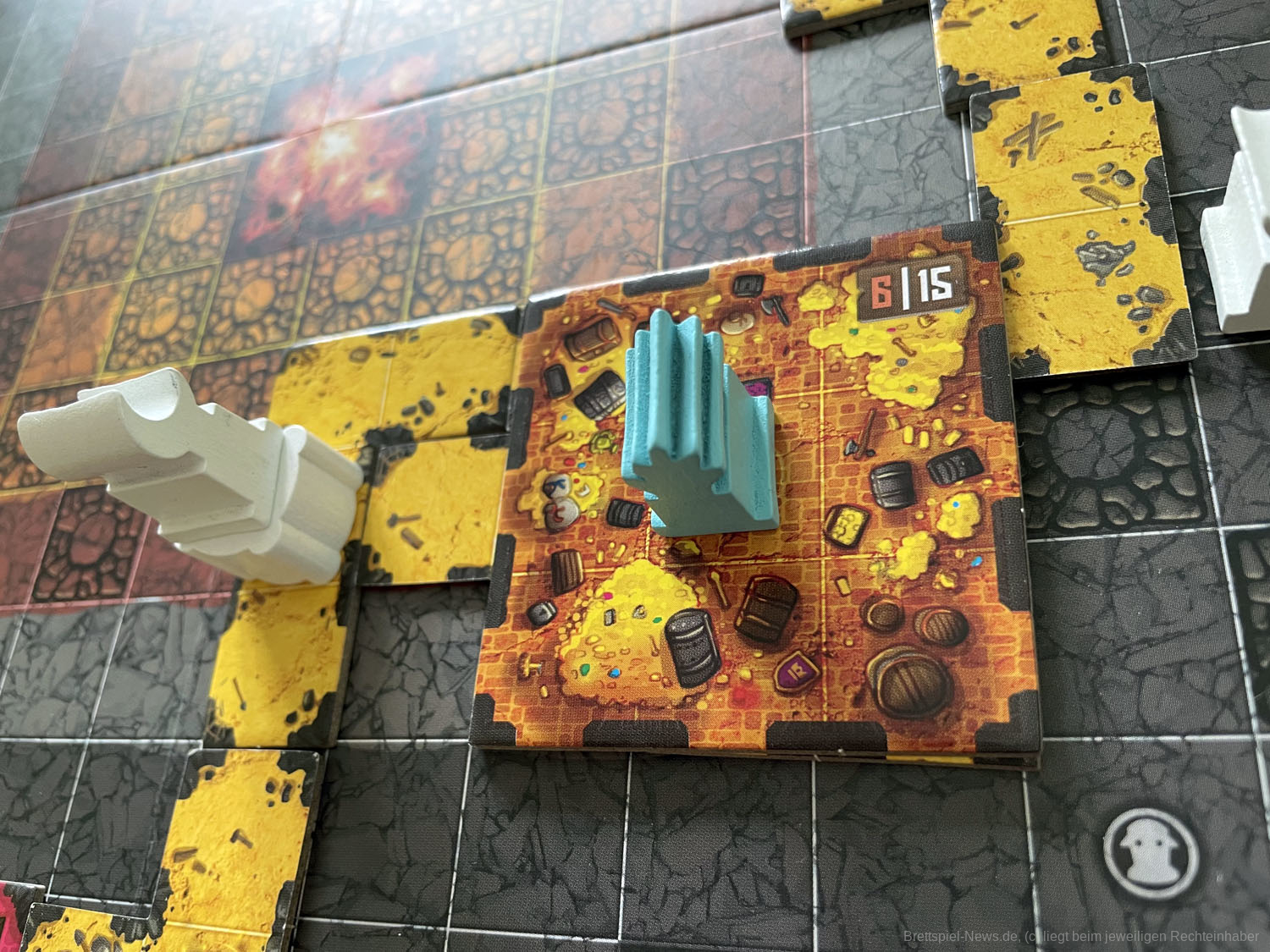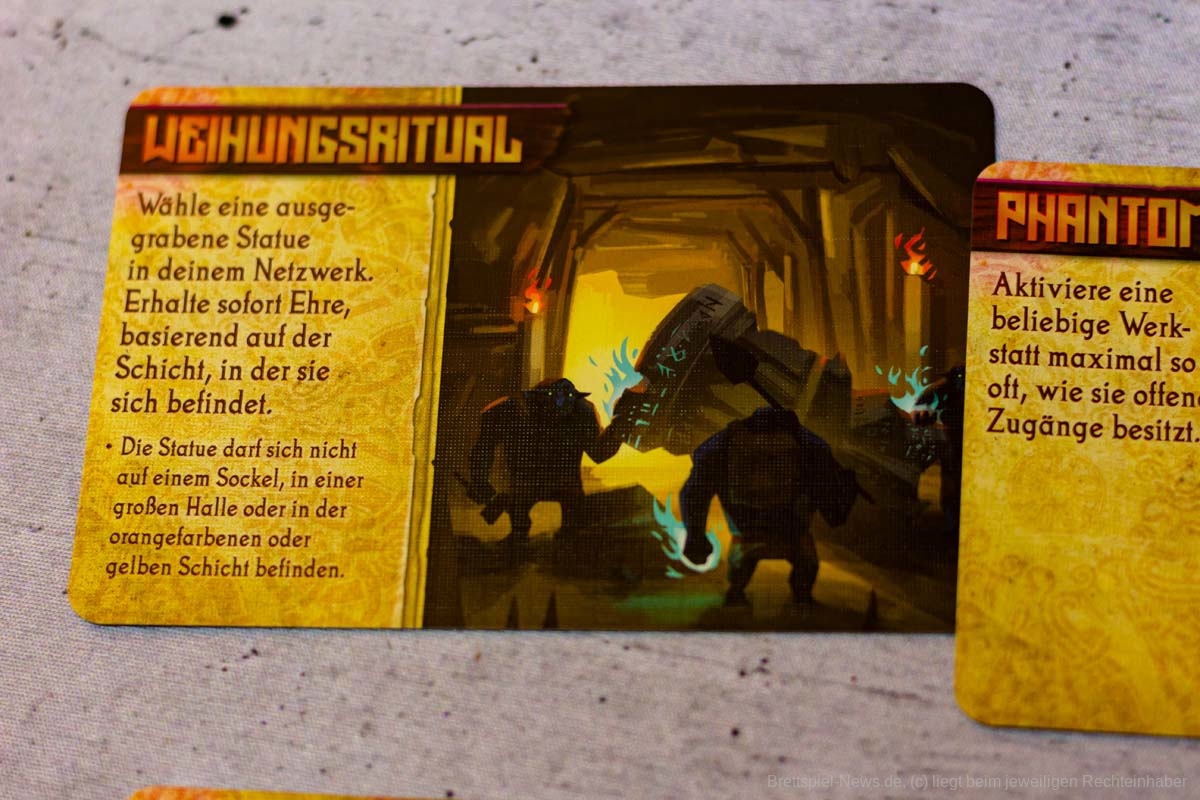 Generell punktet das Spiel durch seine verschiedenen Modi. Denn soll der Konkurrenzdruck vermieden werden, kann sich die Gruppe zusammenschließen und im Koop-Spiel (das dem Solomodul entspricht) versuchen, trotz unvorhersehbarer Beben und Flüche die gestellten Aufgaben zu erfüllen. Dieser Modus bringt sogar eine Kampagne mit, die je nach Sieg oder Niederlage für die nächste Koop-Partie Vor- oder Nachteile ins Spiel bringt. Zu zweit hat er bei uns allerdings nicht gezündet, da sich die strategischen Möglichkeiten für den Gewinn in Grenzen halten.