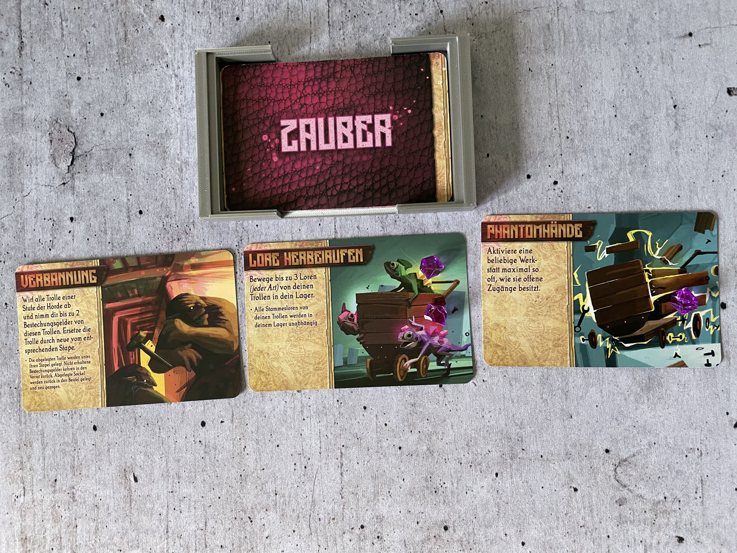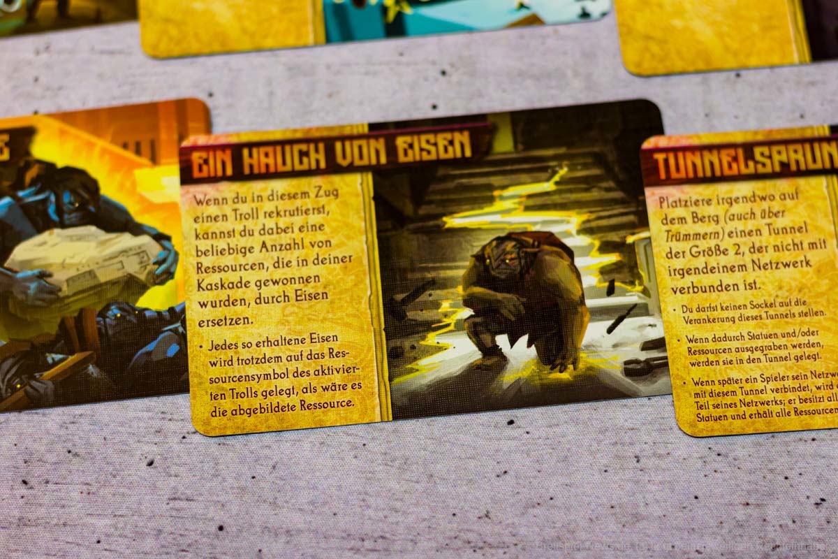 Neben der Konkurrenz beim Trollkauf bieten diese Aspekte jedoch die einzige Interaktion, denn ansonsten bauen alle Spielenden mehr oder minder fröhlich solitär vor sich hin. Die Tunnel bleiben stets getrennt voneinander und besonders zu zweit kommt man sich da nicht in die Quere.