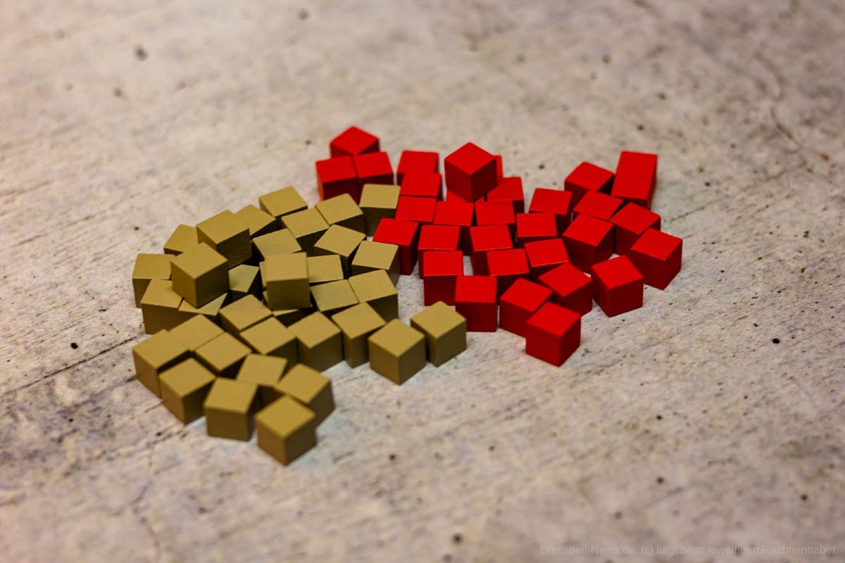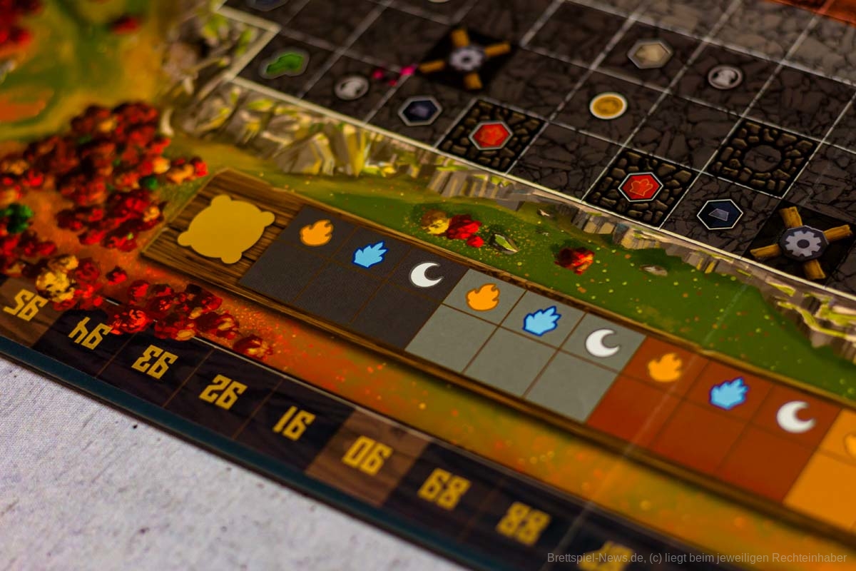 Die Spielzeit wird nicht durch eine bestimmte Anzahl von Runden limitiert, sondern ergibt sich ganz organisch aus diesem Kaskadenbau. Dabei kommt es nicht vor, dass die Spieler:innen das Spielende künstlich in die Länge ziehen, denn ohne Ressourcen lässt es sich schlecht gewinnen. Alle werden so unbewusst zum Spielende hingetrieben, wodurch das Spiel sehr rund und balanciert wirkt.