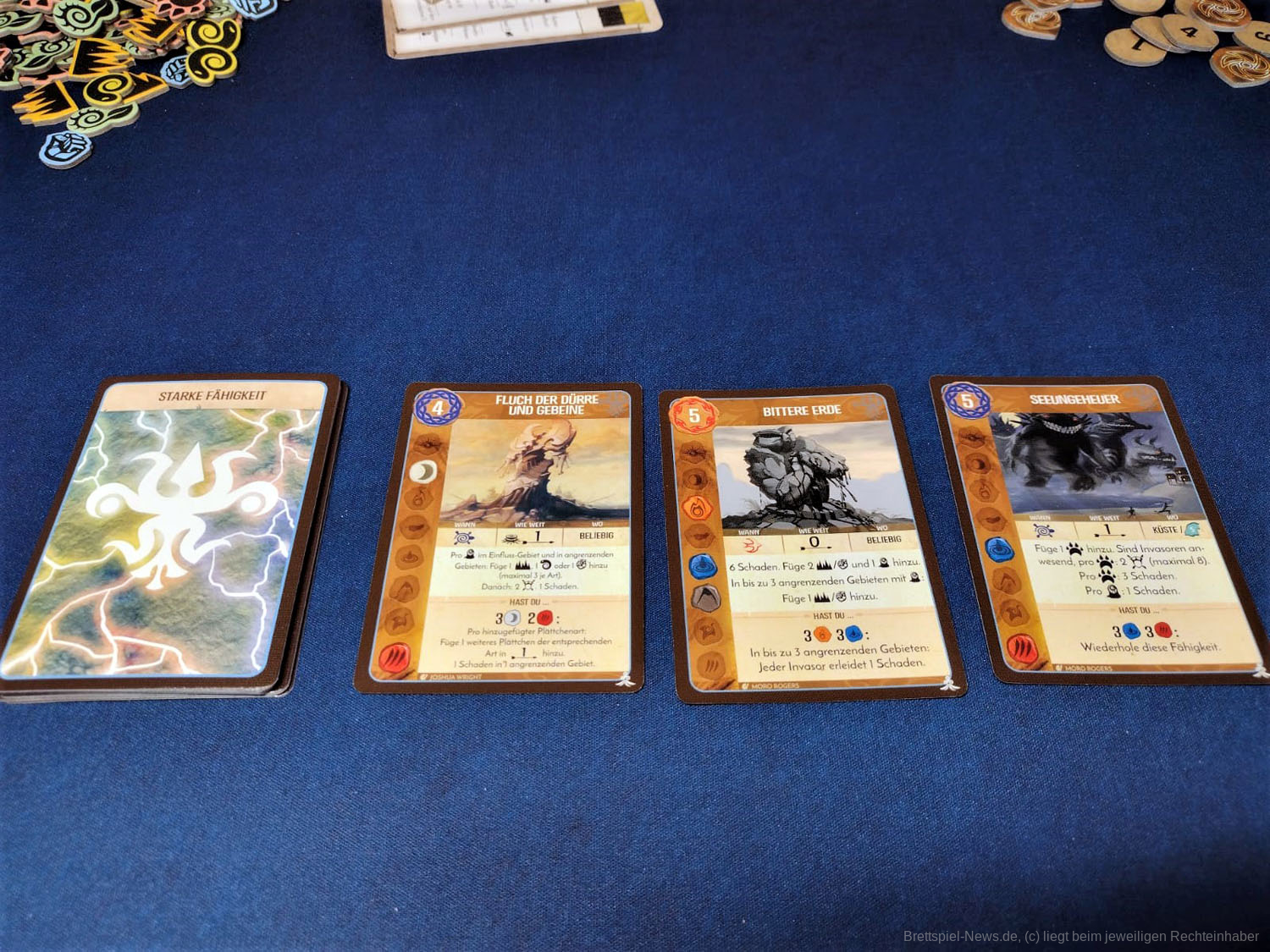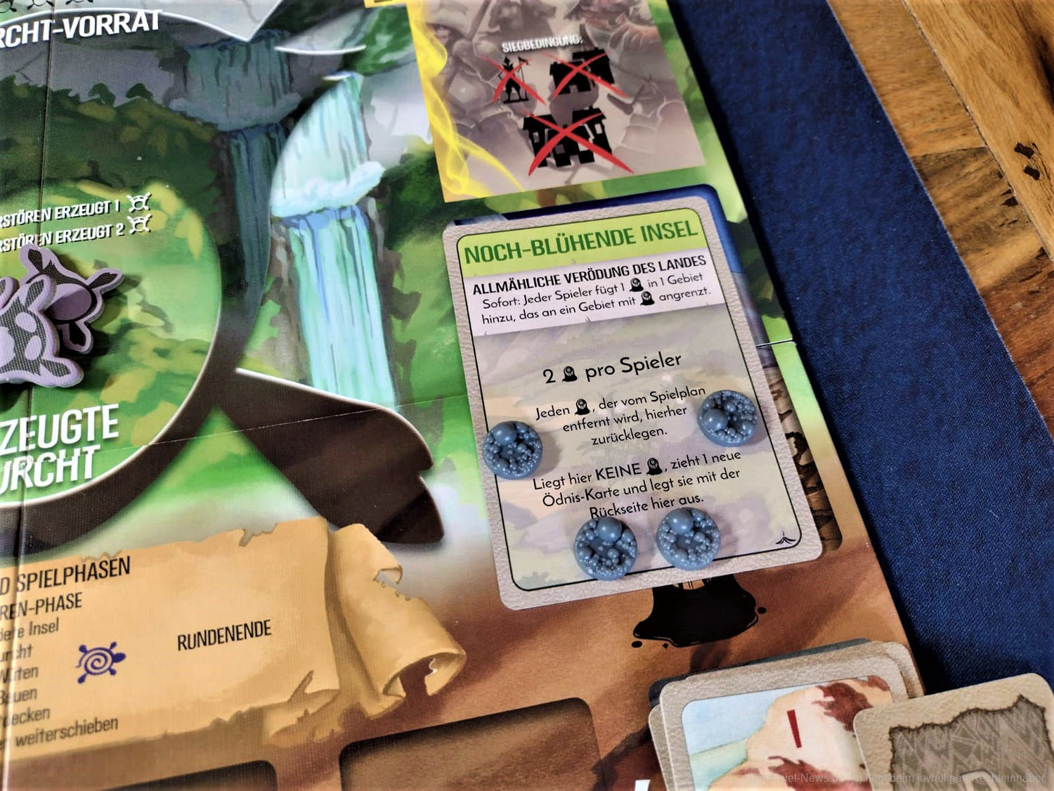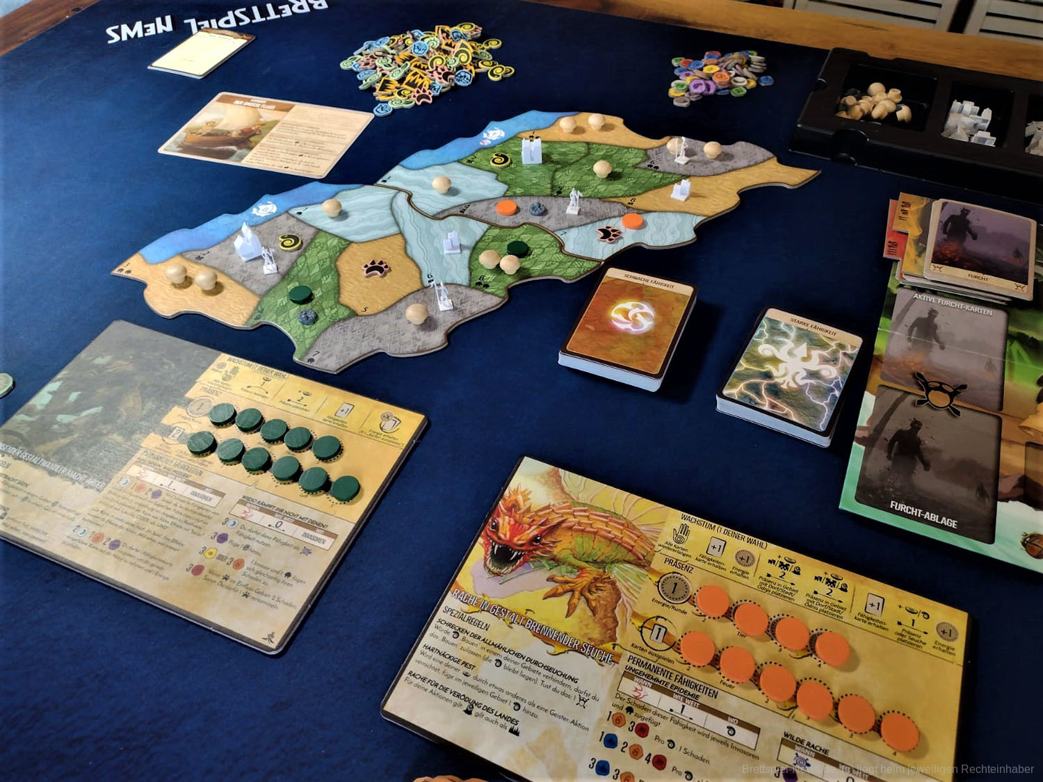 Erwähnenswert sind auf jeden Fall die zahlreichen frischen Karten. Es gibt eine große Palette an neuen Fähigkeiten und eine Vielzahl an Ereignissen und Blühende- bzw. Verödete-Inselkarten, durch die das Spiel noch vielseitiger wird.