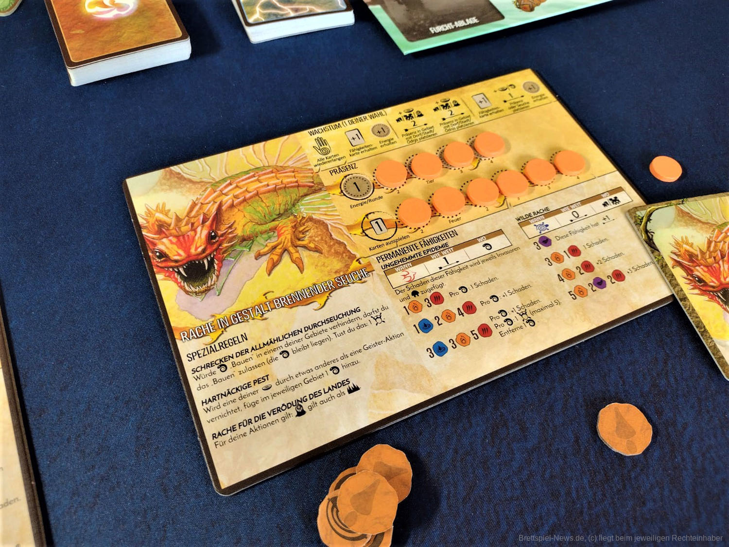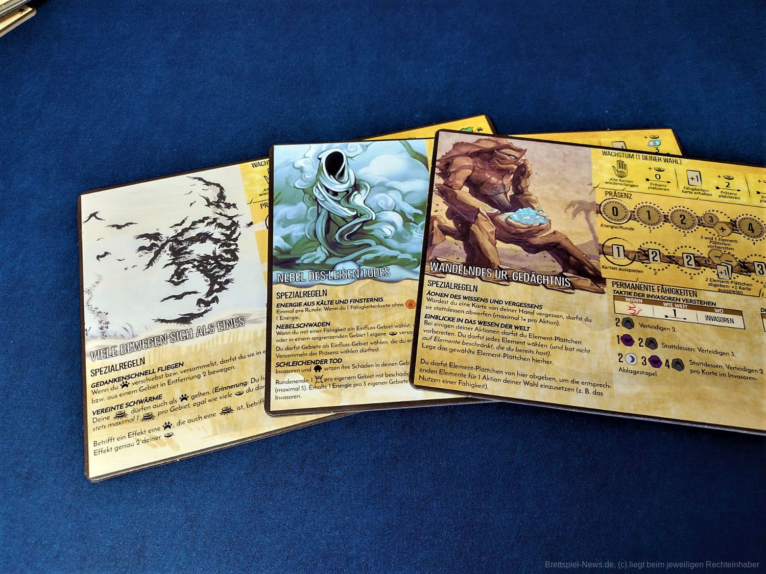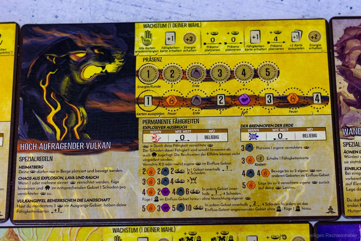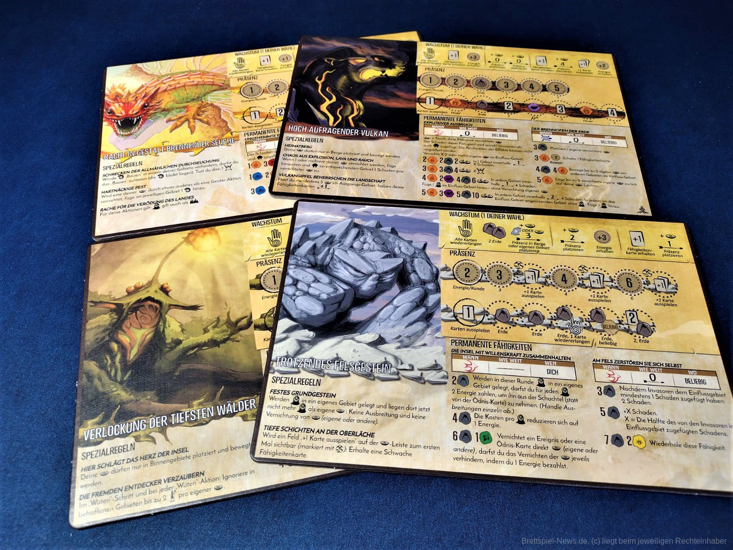 Erwähnenswert sind auf jeden Fall die zahlreichen frischen Karten. Es gibt eine große Palette an neuen Fähigkeiten und eine Vielzahl an Ereignissen und Blühende- bzw. Verödete-Inselkarten, durch die das Spiel noch vielseitiger wird.