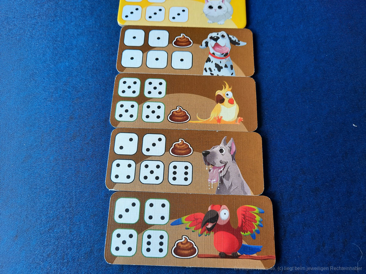 Wir versuchen, die Tiere unserer Mitspielenden zum Umzug in unser Heim zu bewegen. Und was lassen die Süßen uns als Umzugsgeschenk da? Natürlich das, was der Spieltitel schon vermuten lässt: einen großen braunen Kothaufen. Im Spiel sogar noch durch Material besonders hervorgehoben. Die Zeit der Kot-Spiele scheint noch nicht vorüber zu sein.